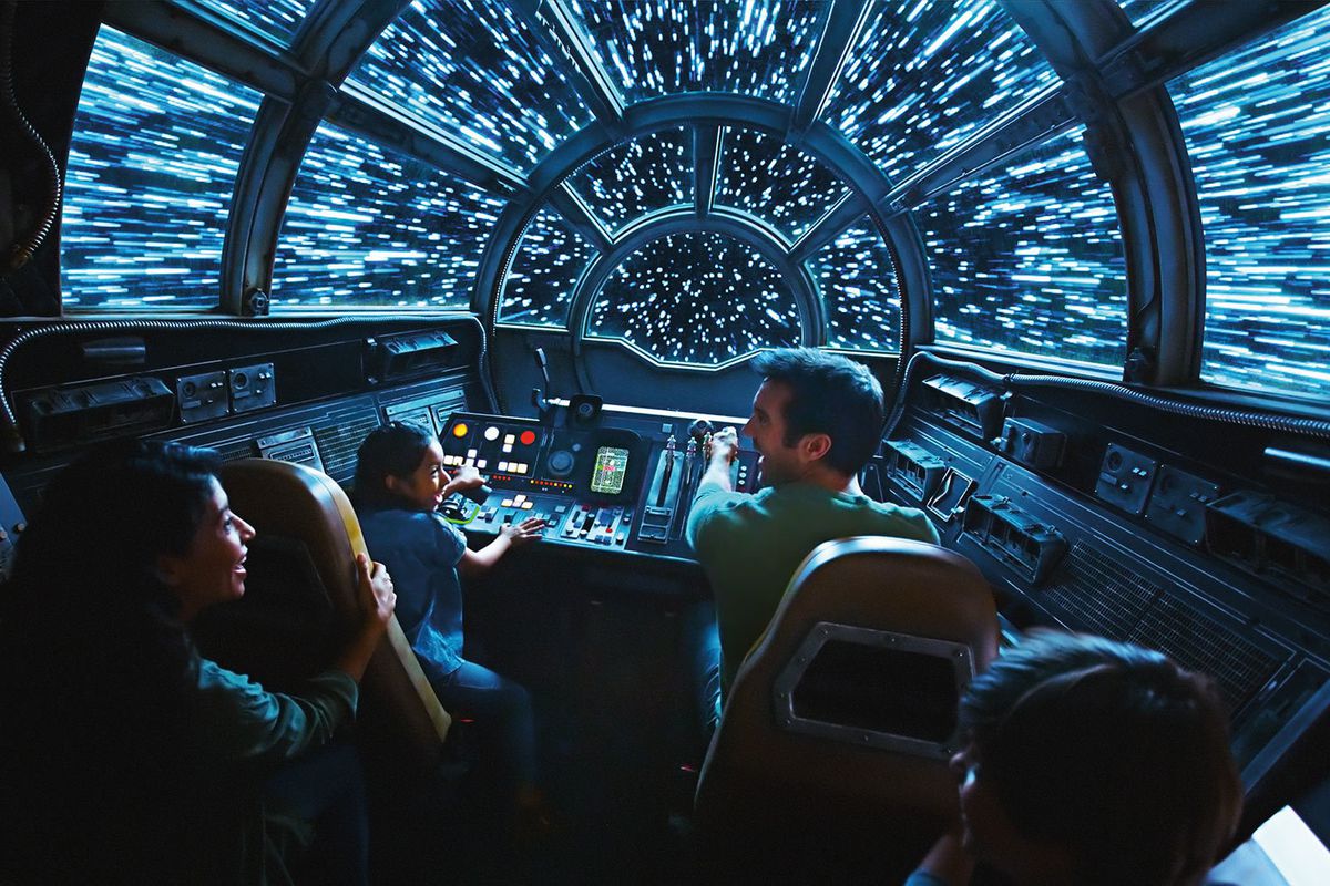 • Millennium Falcon: Smugglers Run: Вы не просто пассажир, а член экипажа «Сокола Тысячелетия». В кабине на 6 человек каждый получает роль: пилота, инженера или наводчика. От того, как вы справитесь с управлением, зависит состояние корабля в конце полета.