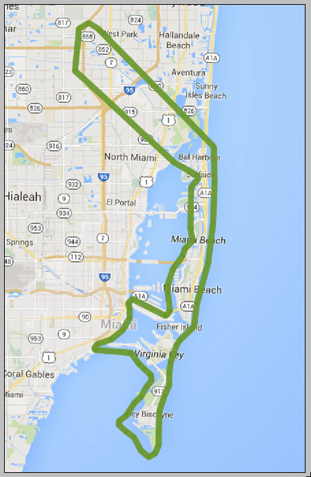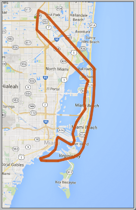 Вариант 1. Тур над Майами, продолжительностью 35 - 40 минут. Карта маршрута: Захватывающие дух полеты над Майами на вертолете. Панорама города и восхитительные виды океана. Комфортабельные вертолеты рассчитаны максимум на 3х пассажиров. Большинство вертолетов марки Robinson R44s. Англоговорящие пилоты. В стоимость программы включены трансферы из отеля до взлетной площадки и обратно. Взлетная площадка расположена чуть севернее North Miami Beach, в районе Holywood.