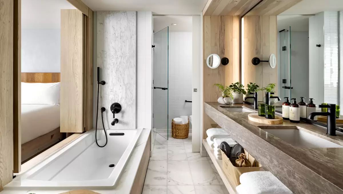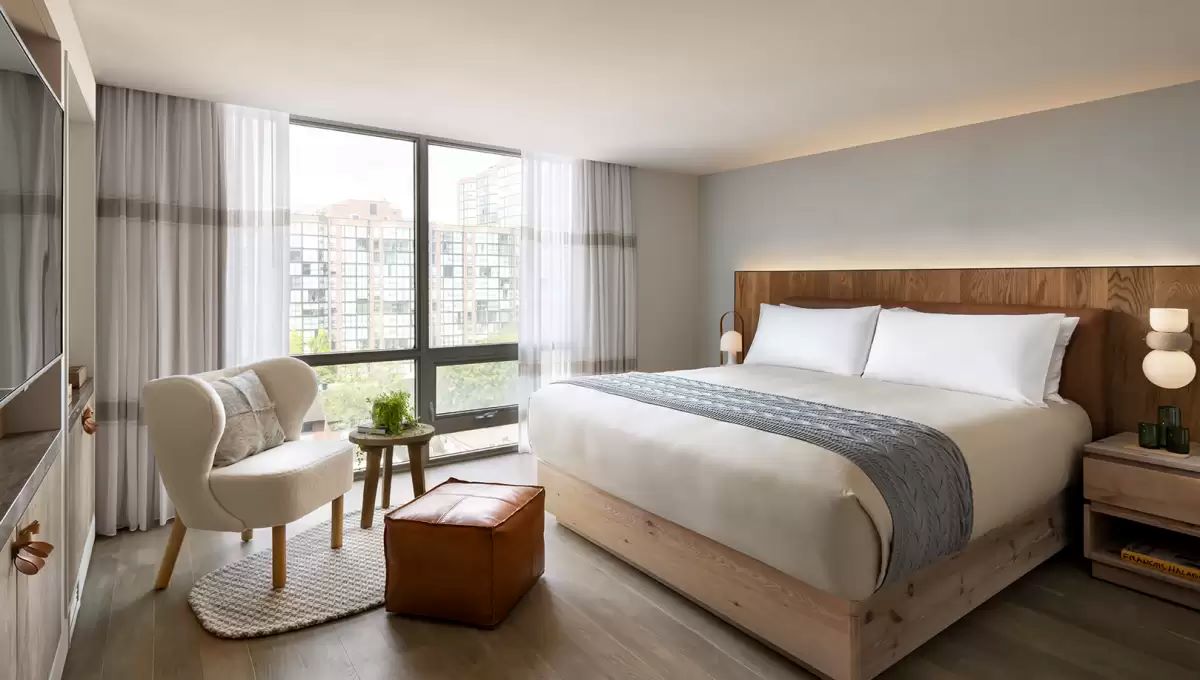 Отель бренда 1 Hotels удобно расположен в самом центре Торонто. Использование натуральных материалов в дизайне интерьеров сочетается с самыми современными технологиями и высокими стандартами обслуживания. К услугам гостей просторные стильные номера в светлых тонах с окнами в пол, откуда открывается потрясающий вид на горизонт. Ванные комнаты отделаны мрамором.