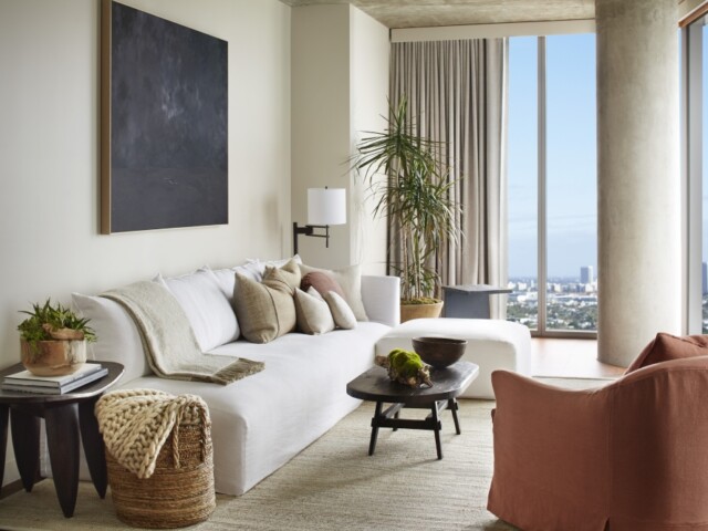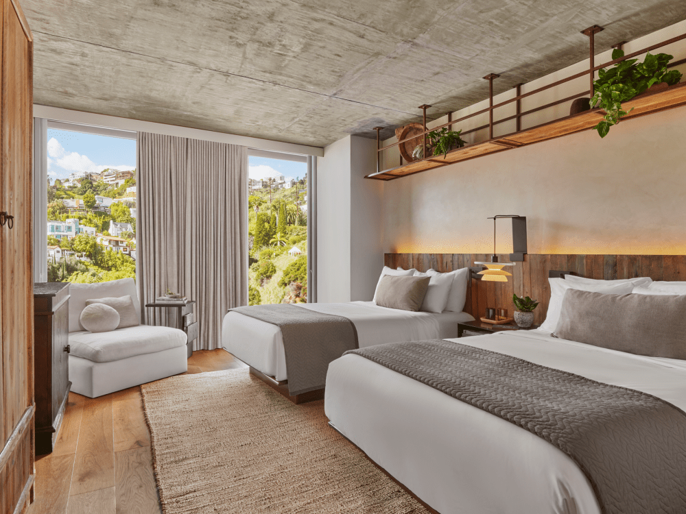 Номера с панорамными окнами от пола до потолка и красивыми видами на Hollywood Hills и город.