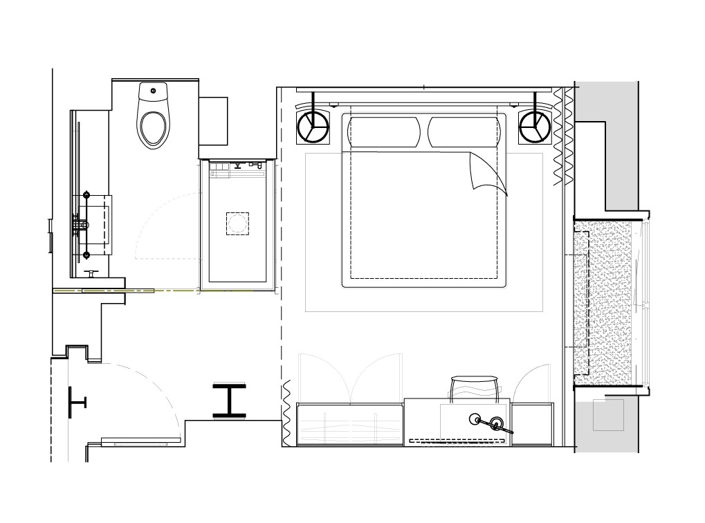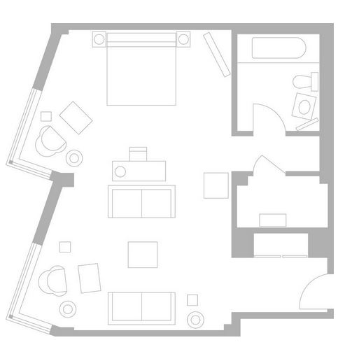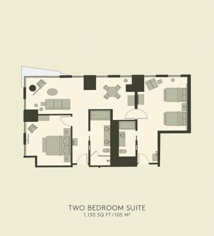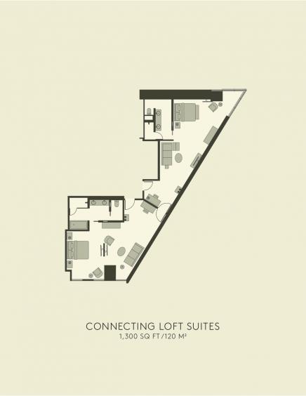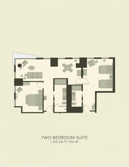 Возможна компоновка One Bedroom Suite + Double room + Skyline King = Three Bedroom Suite.
