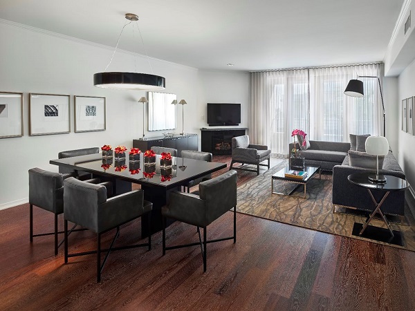 Апартаменты расположены в Золотом треугольнике Беверли-Хиллз, в пешей доступности от знаменитой Rodeo Drive.