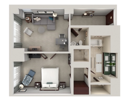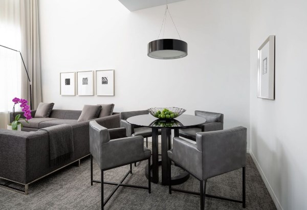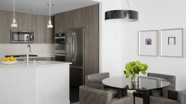 Дизайн всех апартаментов выдержан в едином стиле: минималистичные, строгие интерьеры в холодных тонах.