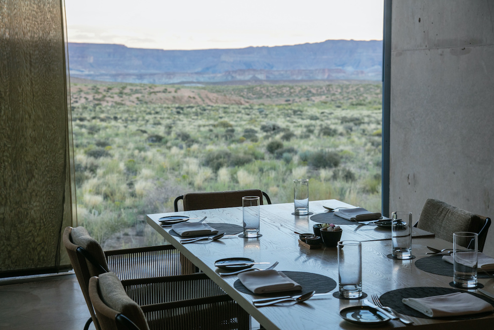 Amangiri Restaurant – ресторан отеля. Сезонное меню с элементами кухни запада США и национальной кухни индейцев Навахо. Открытая кухня, дровяная печь.