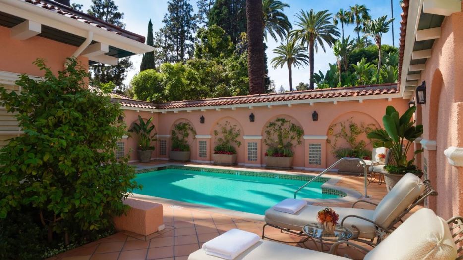 Этот прекрасный отель расположен в самом центре Beverly Hills на бульваре Sunset в окружении тропического сада, занимающего площадь почти в 5 гектаров. «Розовый Дворец» принимает гостей уже более века, среди его постоянных гостей были Мерлин Монро и Ив Монтан, Элизабет Тейлор и Чарли Чаплин.
