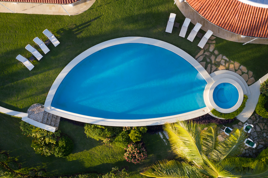 Пляжный клуб Minitas: бассейн, зона отдыха с шезлонгами, зонтами, пляжными диванами и т.д., ресторан, бассейн.