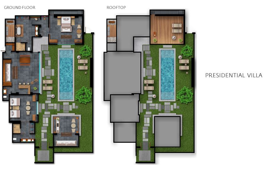 - все номера с бассейнами и большой террасой,