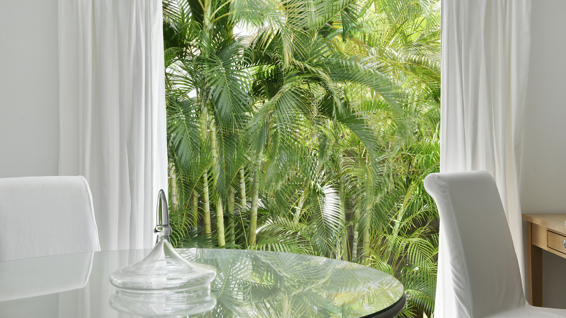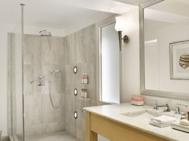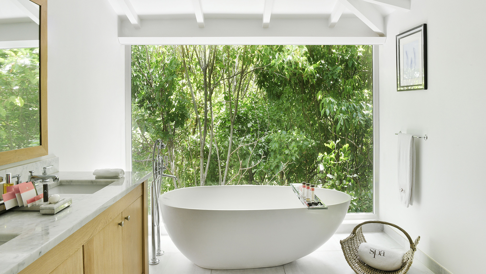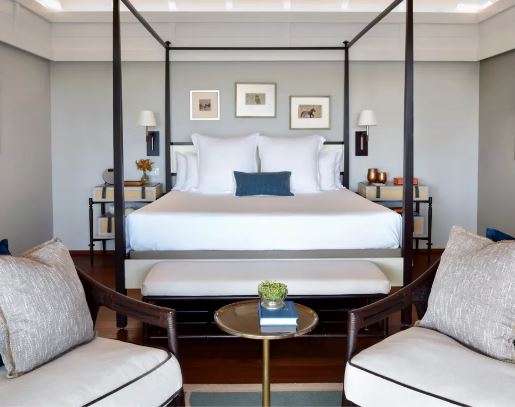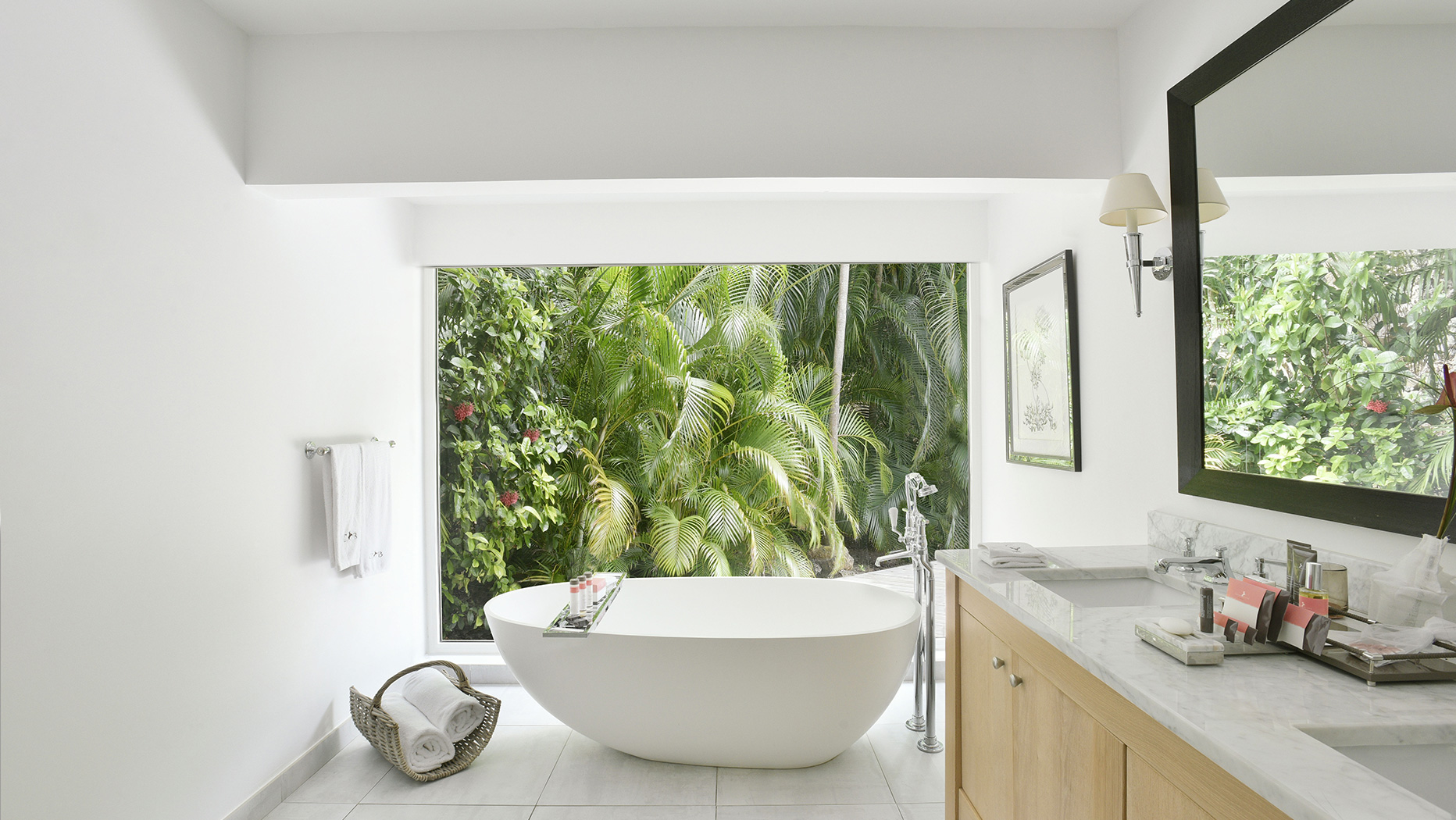 Создатели отеля позаботились о том, чтобы из каждого окна каждого номера открывался свой особенный вид. Будь то небольшие окна над кроватью в спальне или огромные стеклянные стены в ванных, каждая картина за ними продумана и выгодно подчеркнута белоснежным интерьером.