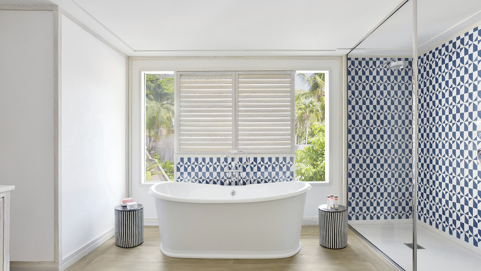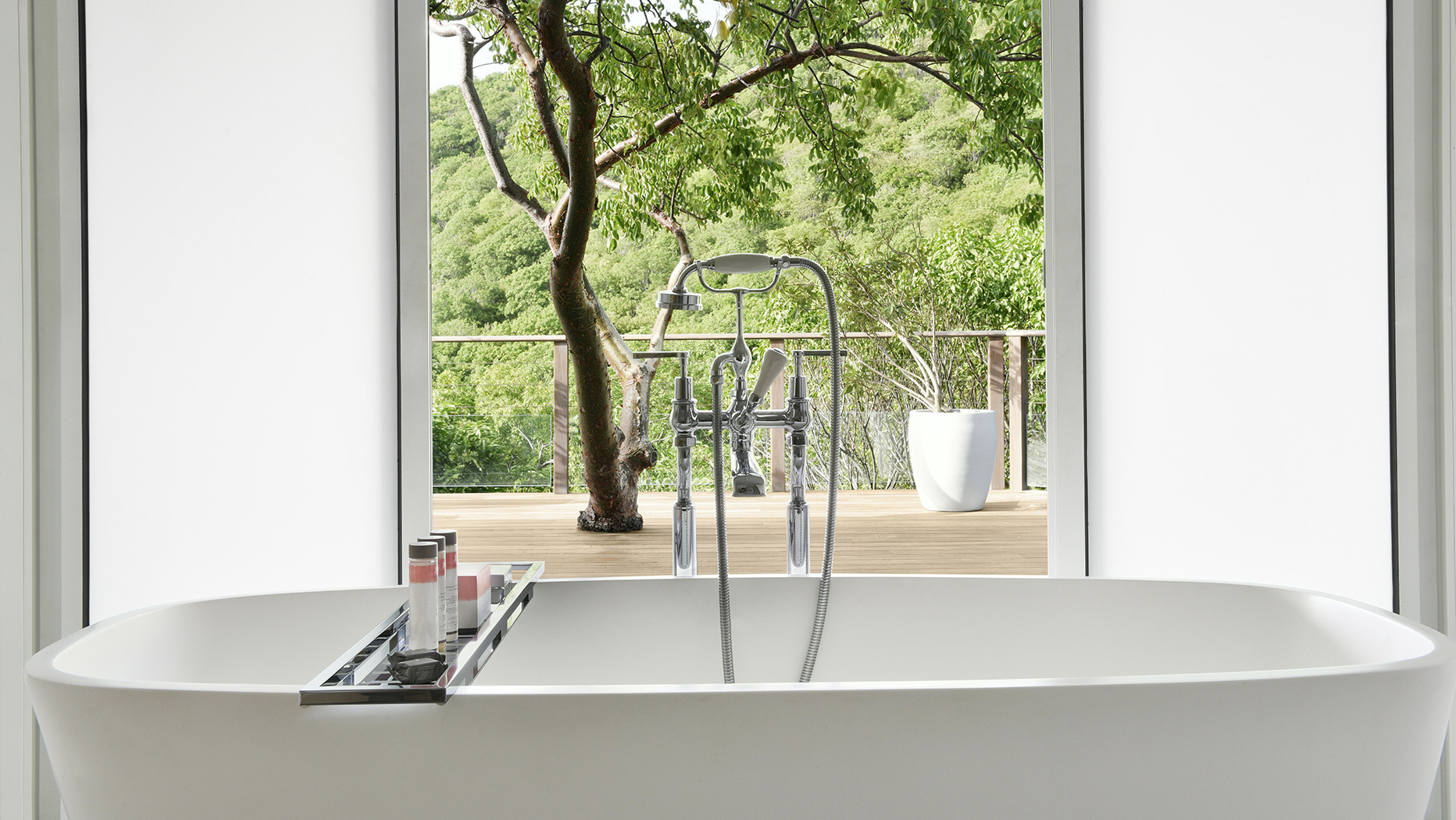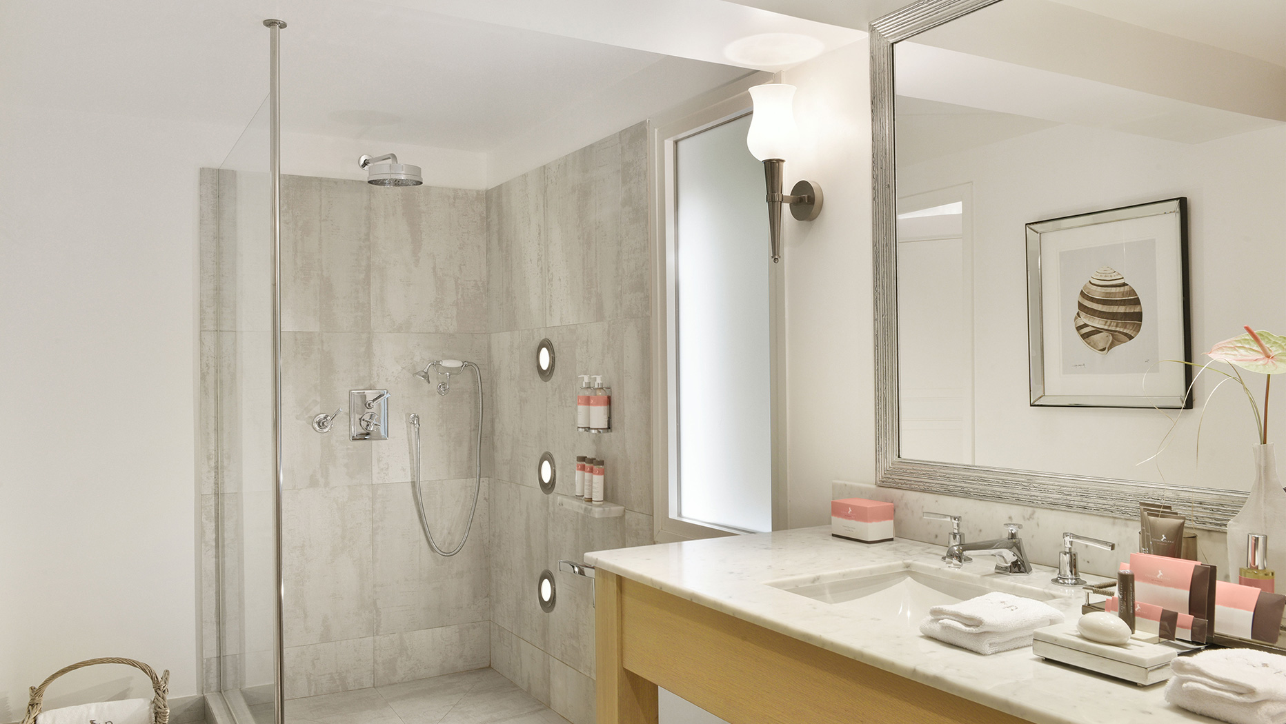 Создатели отеля позаботились о том, чтобы из каждого окна каждого номера открывался свой особенный вид. Будь то небольшие окна над кроватью в спальне или огромные стеклянные стены в ванных, каждая картина за ними продумана и выгодно подчеркнута белоснежным интерьером.
