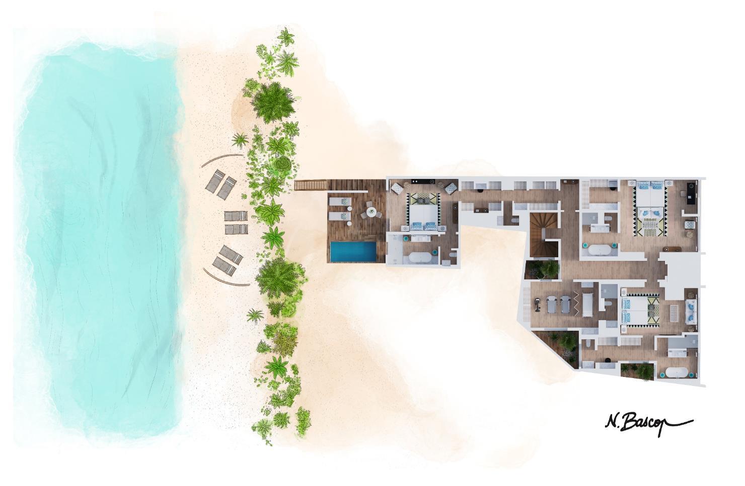 Современный дизайн отеля сочетает визуальную простоту форм и роскошь дорогих материалов с аутентичным карибским колоритом. Интерьеры отеля были полностью обновлены, а иногда и заново созданы, гением эклектики Жаком Гранжем, на счету которого работа с французскими звездами, великими кутюрье и парой выдающихся нью-йоркских отелей. За идеальные сады и ландшафтный дизайн отвечает Мэдисон Кокс. А украшением садов стала кинетическая скульптура французского художника Жана-Мишеля Отониэля “Созвездие Пегаса”.