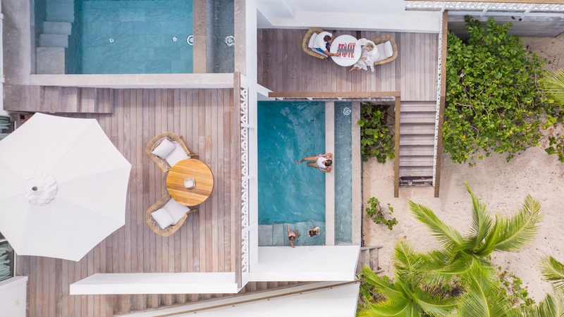 Два открытых бассейна с пресной водой рядом с пляжем. Зона отдыха, шезлонги, зонты, столики. Обслуживается Le White Bar.