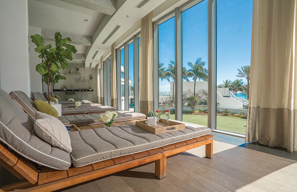 Спа-центр площадью 2043 кв. м с красивым видом на сад, признан одним из лучших новых оздоровительных центров Майами по версии Condé Nast Traveler. К услугам гостей уютная зона отдыха, парная, сауна. Предлагает полный набор оздоровительных услуг по уходу за кожей лица и тела – скраб-бар, горячие и холодные ванны, гидромассажные процедуры, аромотерапия, массажи, обертывания и очищение.