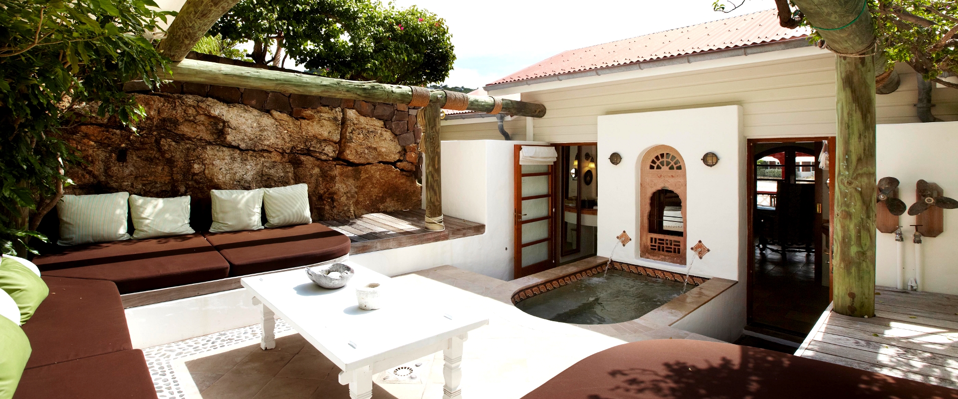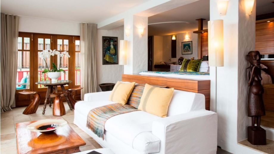 Этот единственный в своем роде номер отличается уединенинием и необычным “африканским” декором. Расположенный на скале номер имеет собственный внутренний дворик в задней части и балкон с видом на залив Сен-Жан. В номере: кровать с балдахином, кресла, письменный стол; в ванной комнате ванна и отдельный душ.