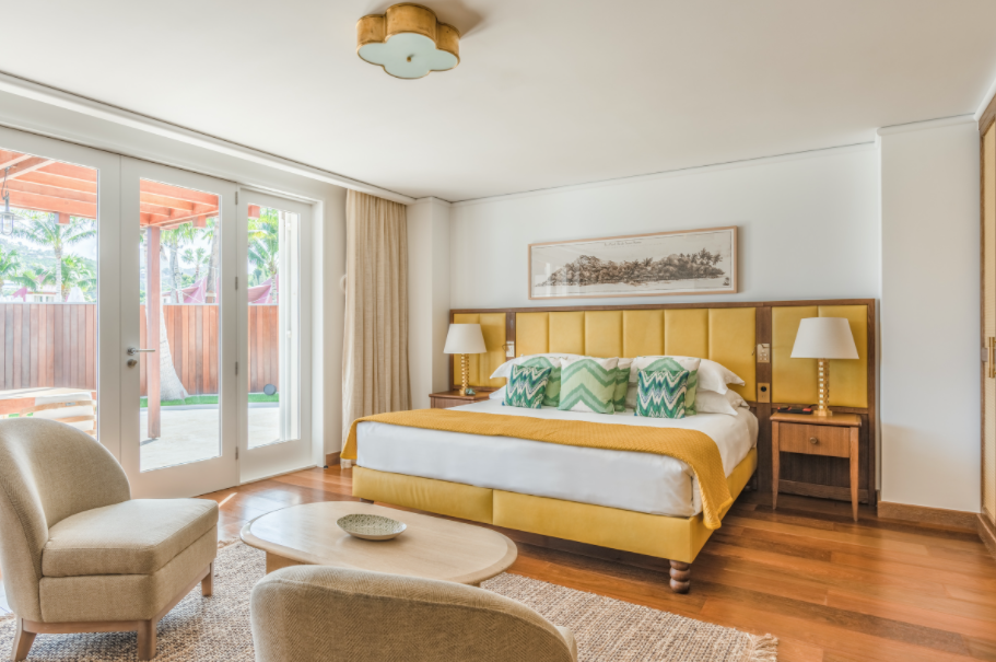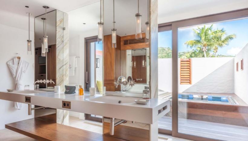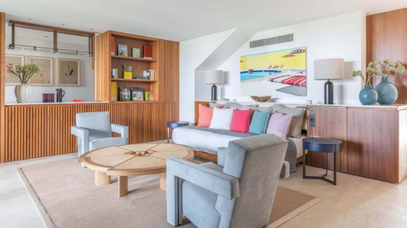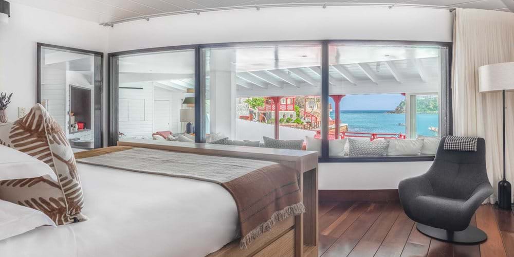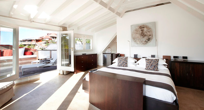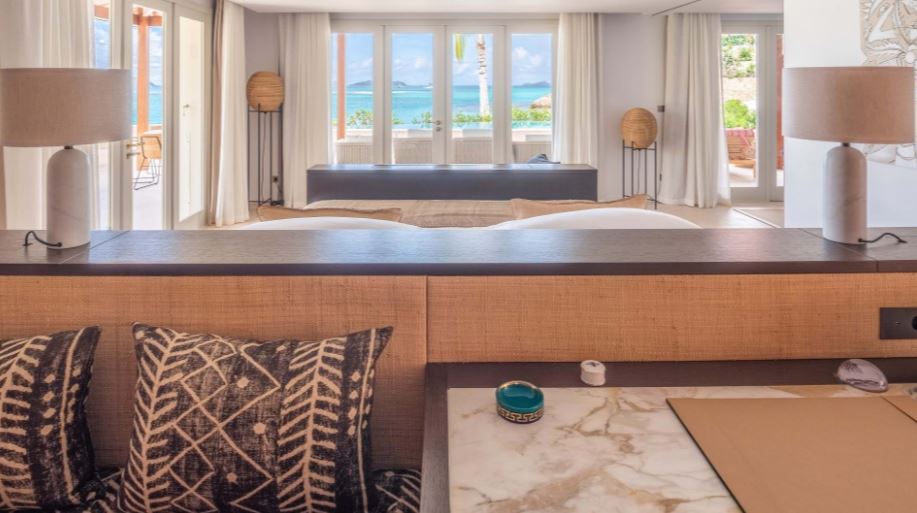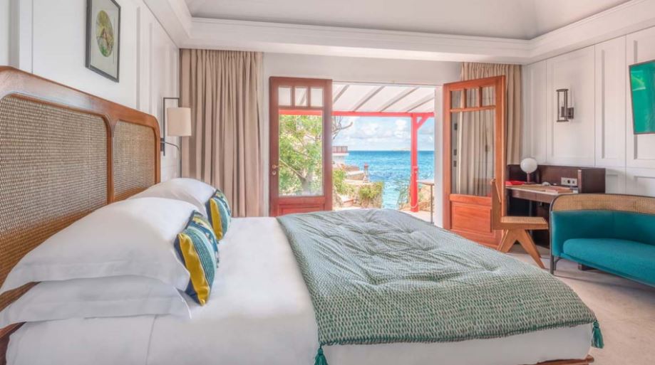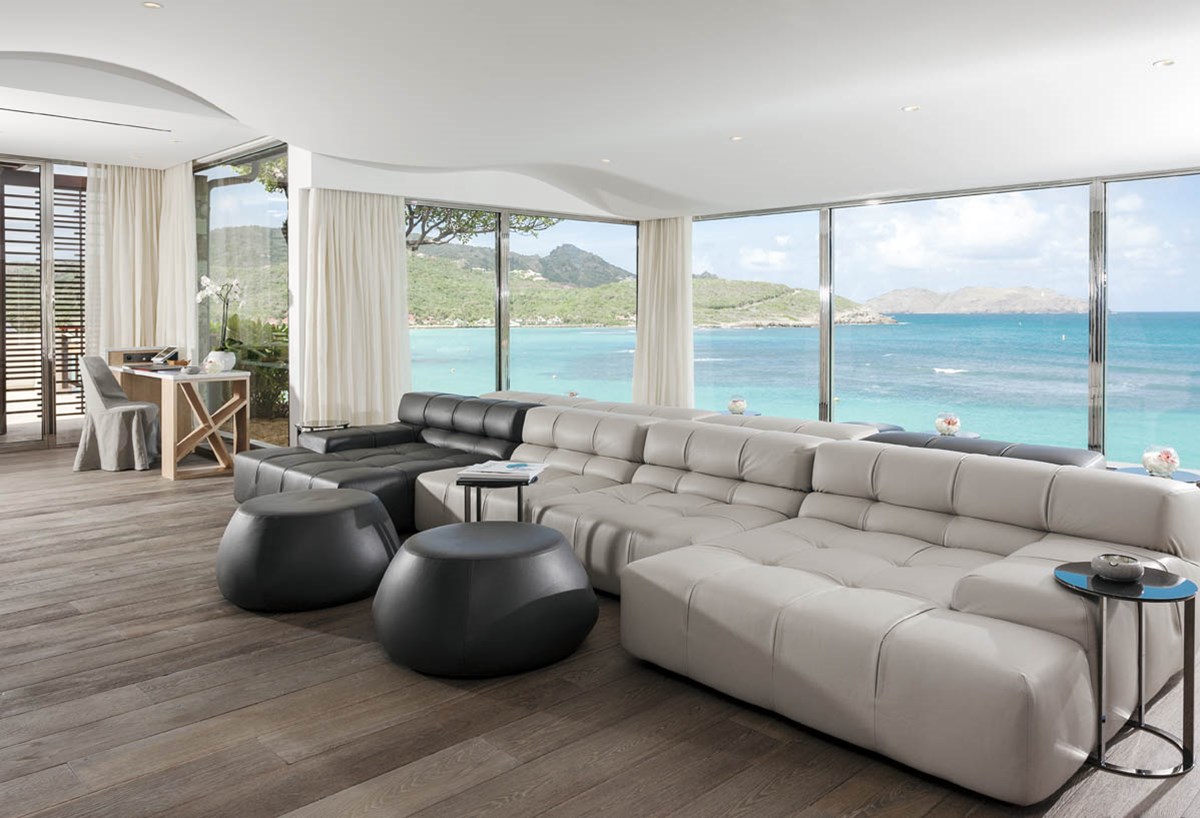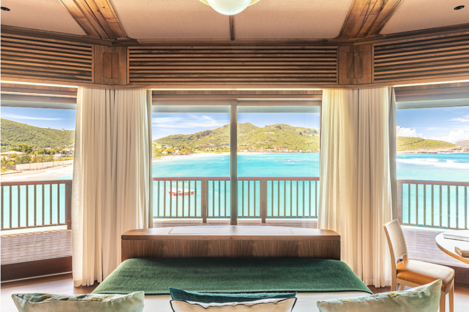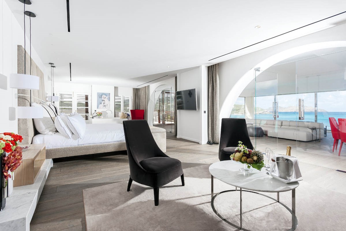 Новый светлый номер расположен в центральном здании. Роскошные панорамные виды на море, залив St Jean Bay и холмы с высоты, современный дизайн в светлых тонах с яркими акцентами.
