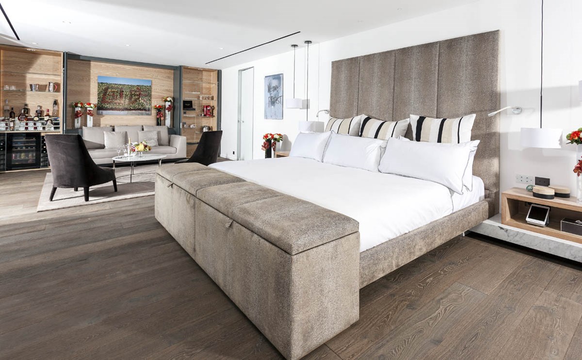Основная спальня с кроватью King-size. При ней ванная комната с ванной и отдельным душем. Площадь номера (без второй спальни) – 60 м2.