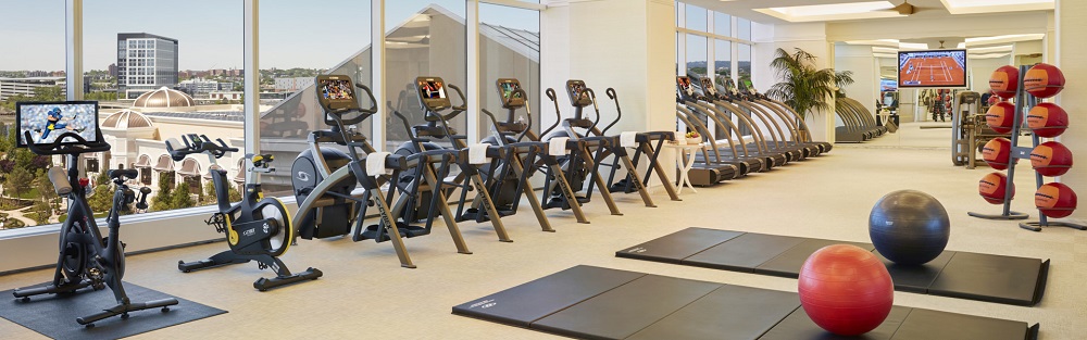 Современный просторный фитнес-центр с кардио- и силовыми тренажерами Woodway, Cybex, Life Fitness & Peloton, свободные веса. Возможен предварительный заказ индивидуальной тренировки.