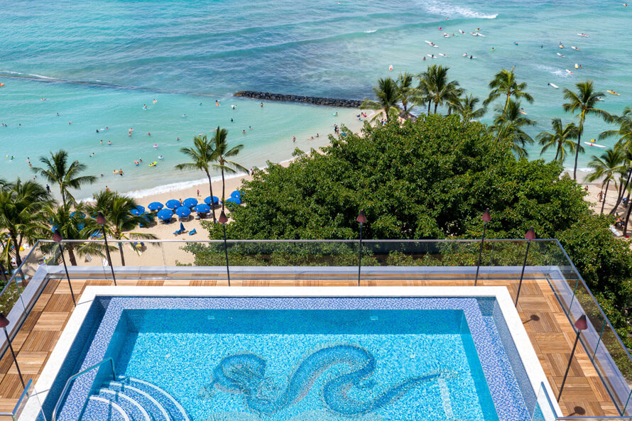 Отель для самых взыскательных путешественников расположен на берегу океана. Каждый из 9 номеров категории Suite с панорамным видом на пляж Waikiki занимает целый этаж с отдельным входом и располагает полностью оборудованной кухней, балконом с гидромассажной ванной. К услугам гостей ресторан французской и японской кухни, роскошный спа-центр, пейзажный бассейн на крыше и терраса для загара.