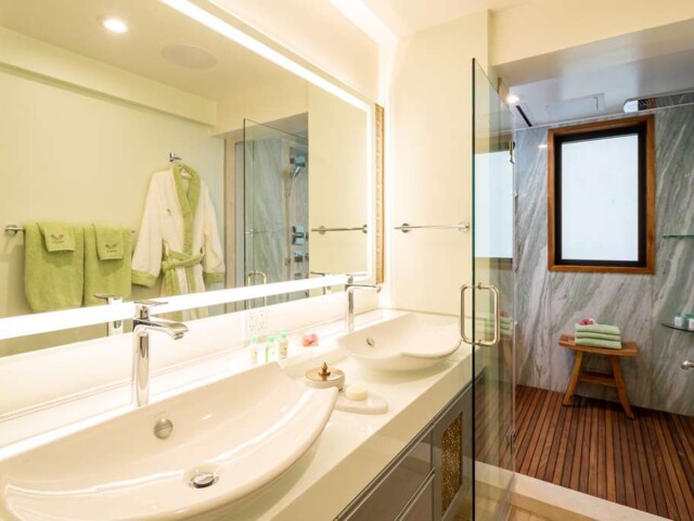 Роскошный спа-центр предлагает процедуры по уходу за лицом и телом. Открыт ежедневно: 09:00 – 18:00.