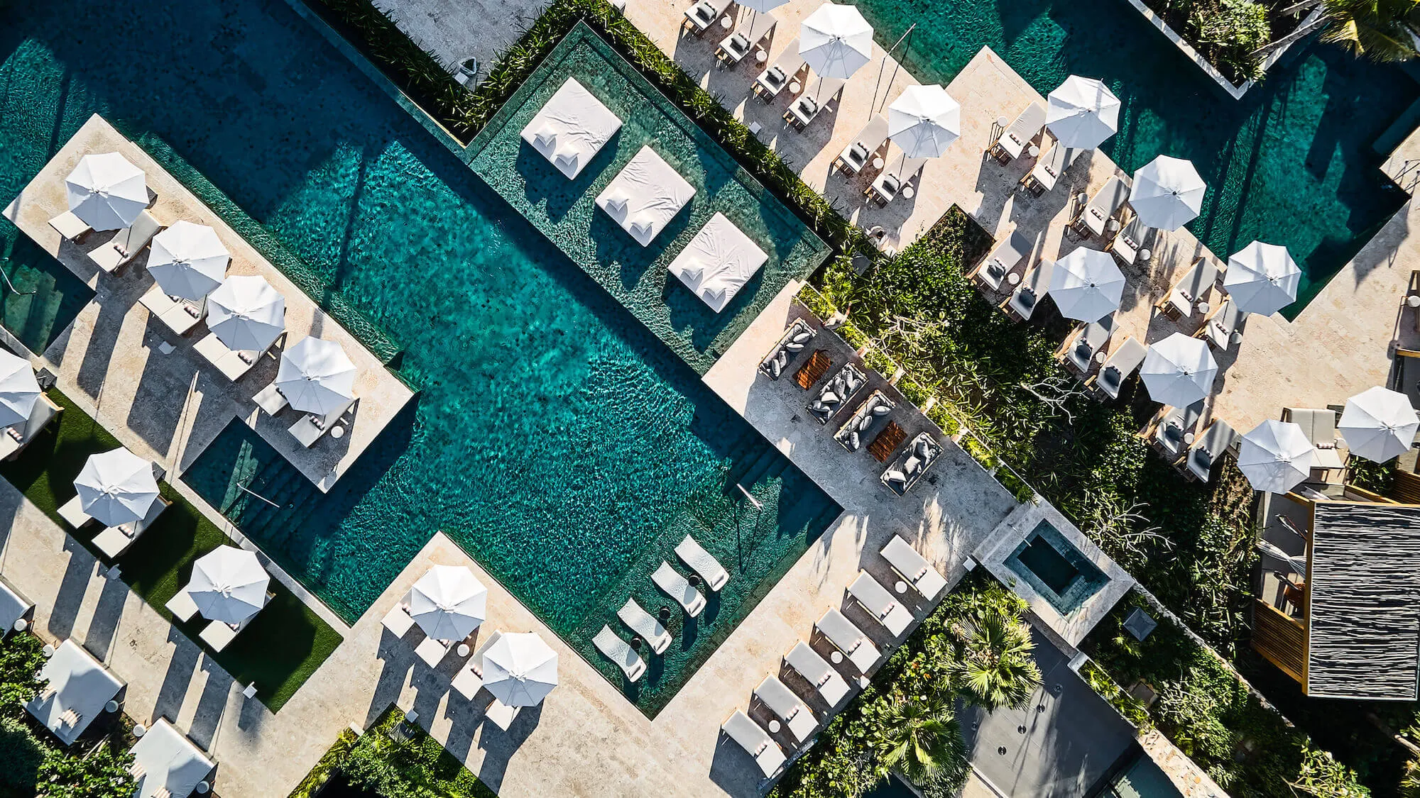 Несколько бассейнов. Зоны отдыха с индивидуальными павильонами (cabanas). Обслуживаются рестораном Albeca.