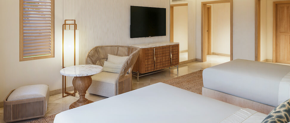 Бассейн. 5 открытых бассейнов: главный бассейн площадью 929 м2 свободной формы; детский бассейн с горкой; бассейн для взрослых с видом на лагуну; бассейн с видом на океан; бассейн Bambu для детей и взрослых.