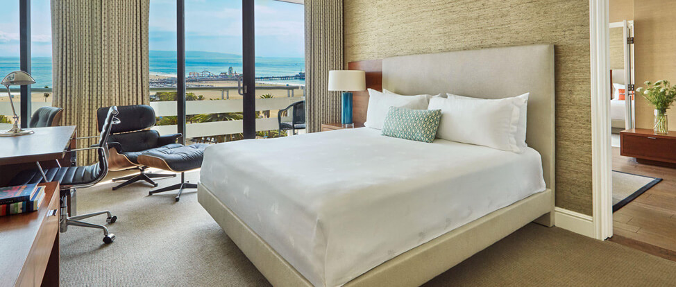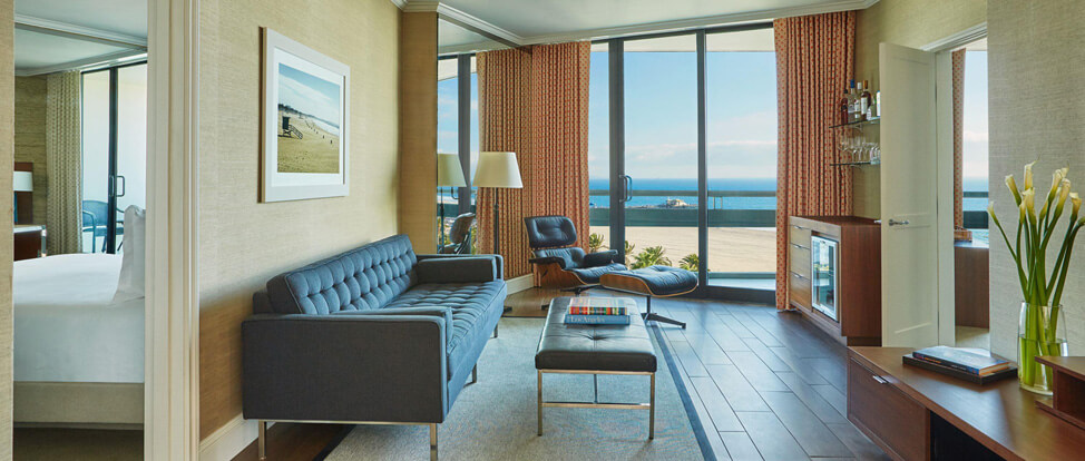 Этот элегантный отель расположен в Санта-Монике на вершине прибрежных скал, откуда открывается прекрасный вид на океан и огромный пляж.