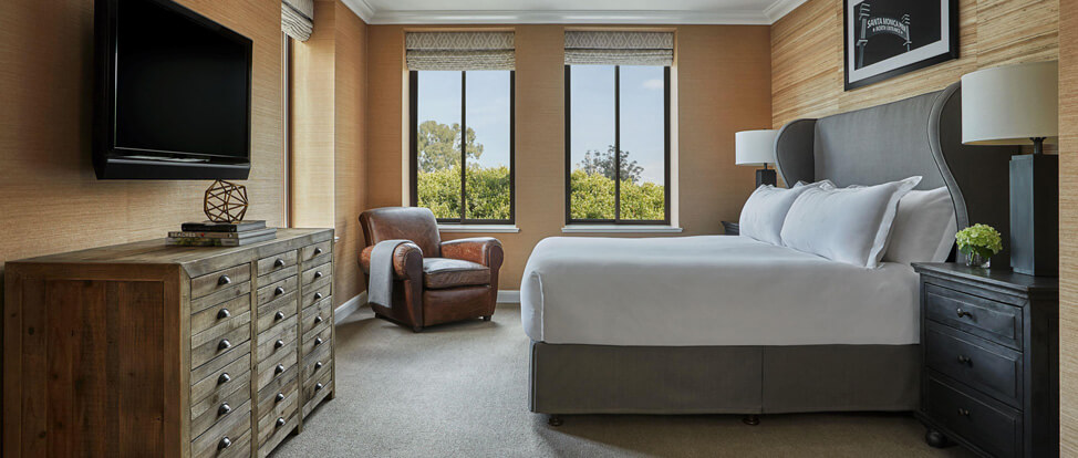 История отеля насчитывает уже более столетия, впервые он открылся в 1920 году. По моде того времени номера представляли собой небольшие коттеджи (бунгало) в саду и вокруг бассейна. Они функционируют и сейчас, предоставляя возможность разместиться как бы в собственном доме у пляжей Санта-Моники. Большая же часть номерного фонда поделена между двумя зданиями: историческим Palisades и современным Ocean Tower.