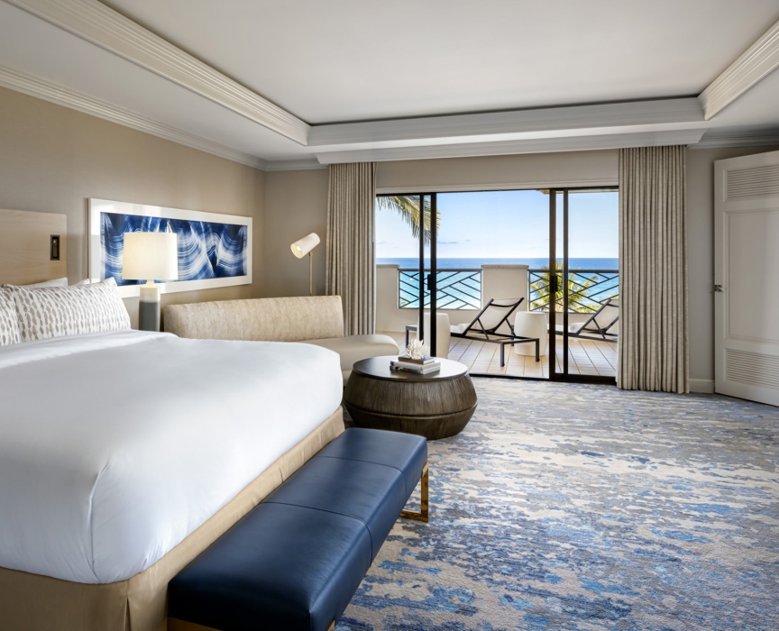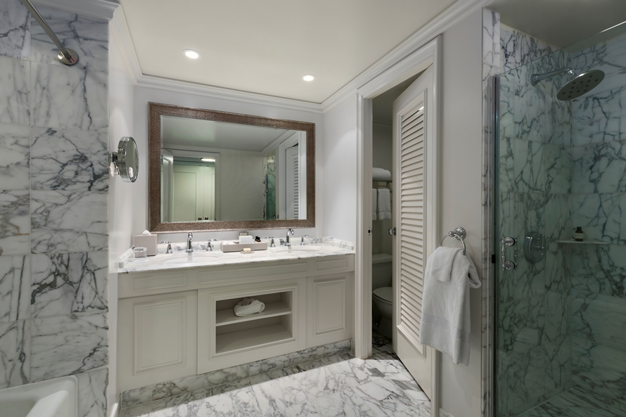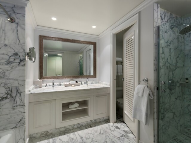 Роскошный номер с красивым видом на океан. В номере: Главная спальня: кровать с балдахином, небольшая зона отдыха с мягким креслом, выход на террасу. Гардеробная комната с туалетным столиком. Отделанная мрамором ванная комната с джакузи и отдельной душевой кабиной. Вторая комната: небольшая зона отдыха с мягким креслом, рабочий стол. Отделанная мрамором ванная комната с ванной и отдельной душевой кабиной.