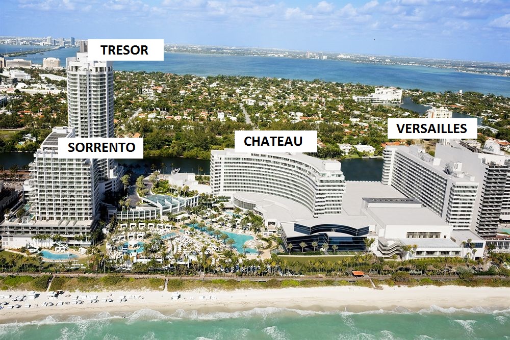 Большой, даже по меркам Майами (почти 9 гектаров), отельный комплекс состоит из четырех зданий: Sorrento, Tresor, Chateau и Versailles и расположен в Майами-Бич в районе Mid-Beach. Chateau & Versailles были спроектированы Морисом Лапидусом, архитектором полностью преобразившим Майами в середине XX века.
