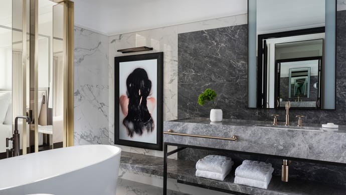 - Оформлением интерьеров отеля занималось французское бюро Gilles & Boissier.