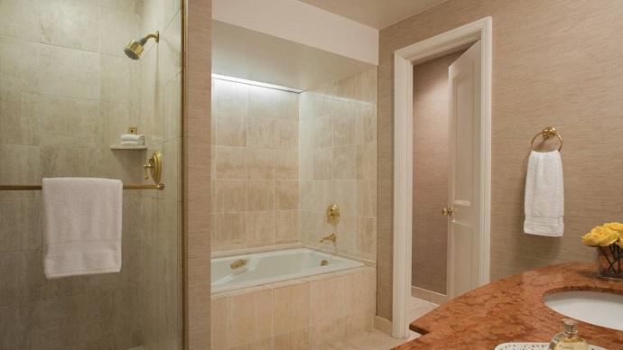 Просторный номер в бежевых тонах с мебелью из красного дерева. Расположен в главном корпусе курорта. Ванная комната, отделанная мрамором, с двойной раковиной, ванной и отдельной душевой кабиной.