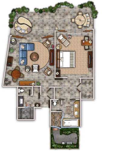 Номера расположены на нижних уровнях бунгало в зоне Sea Shell рядом с детскими бассейнами Keiki или Beach Tree crescents. Спальня, просторная гостиная с письменным столом и обеденной зоной, ванная комната с ванной и отдельным душем, душевая кабина в саду, гостевой туалет с душем, парная.