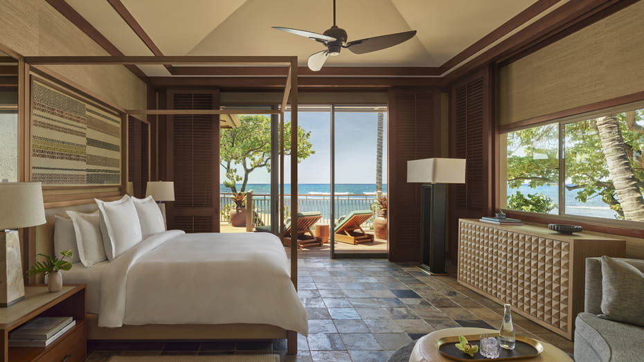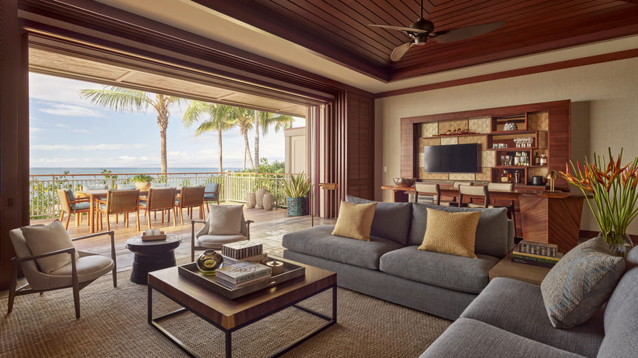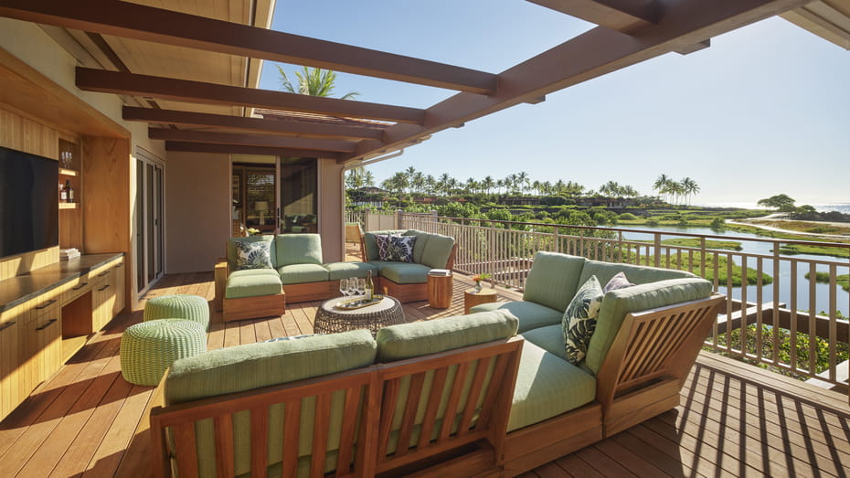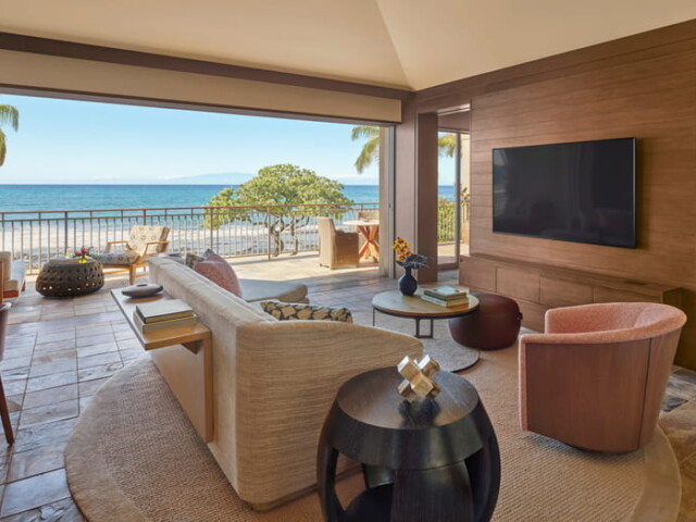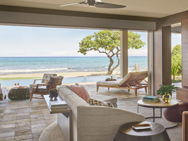Kahuwai Suite с одной или двумя спальнями расположены на берегу океана и имеют большую террасу-ланаи с бассейном.