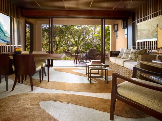 Отель расположен на берегу морского заповедника. Современные интерьеры с колоритными фольклорными акцентами, просторные стильные номера, великолепный сервис и огромная территория на самом “необитаемом” острове в Гавайском архипелаге. Если и существует возможность скрыться от шума и суеты на самом краю земли, на острове, где потоки красной лавы тысячи лет назад застыли в водах океана причудливыми скалами, где среди горных пиков прячутся райские пляжи, а в синих водах океана резвятся огромные горбатые киты – то это место Four Seasons Resort Lana’i.