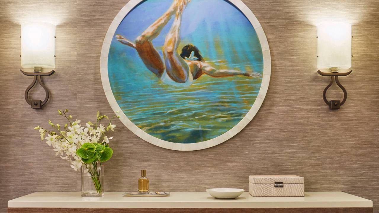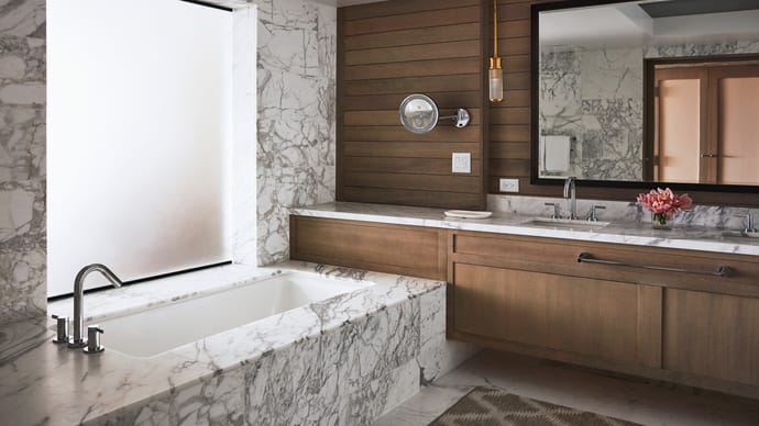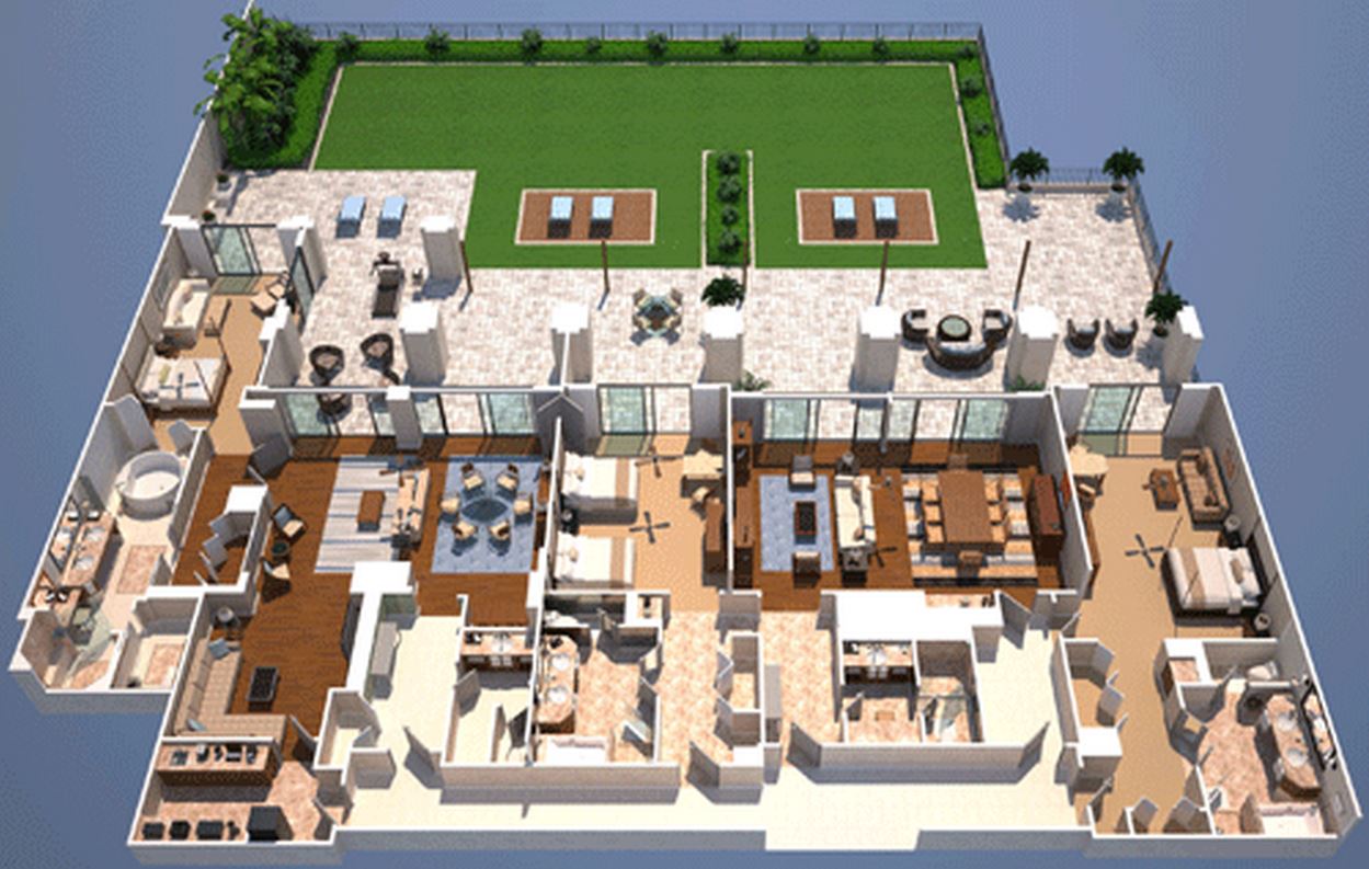 Три спальни, каждая с ванной комнатой с двойной раковиной, ванной и отдельной душевой кабиной.