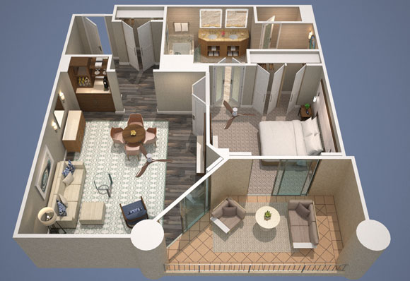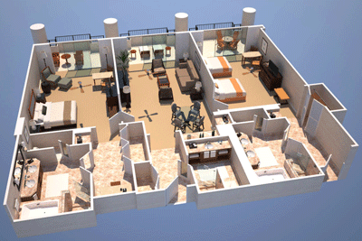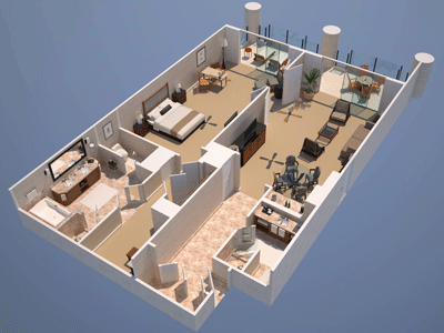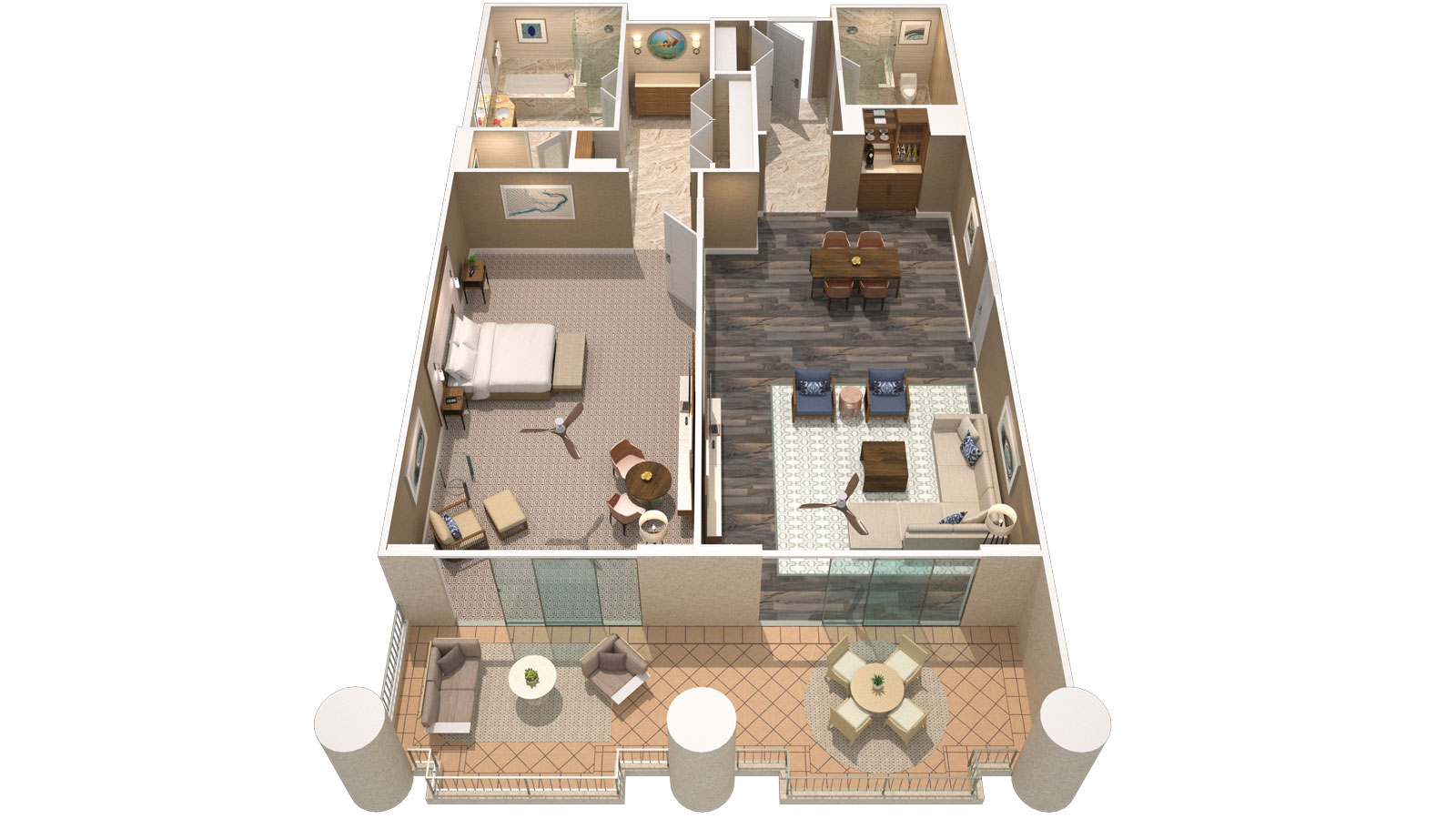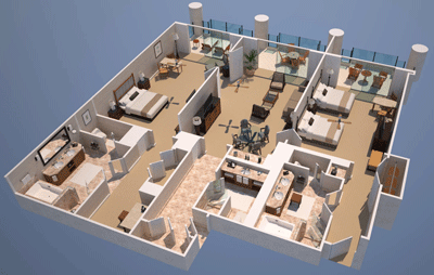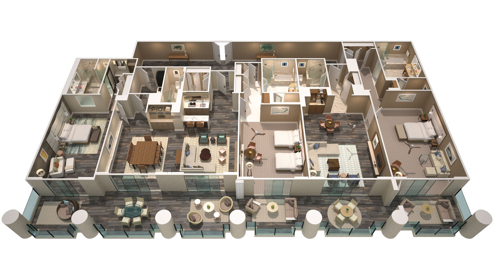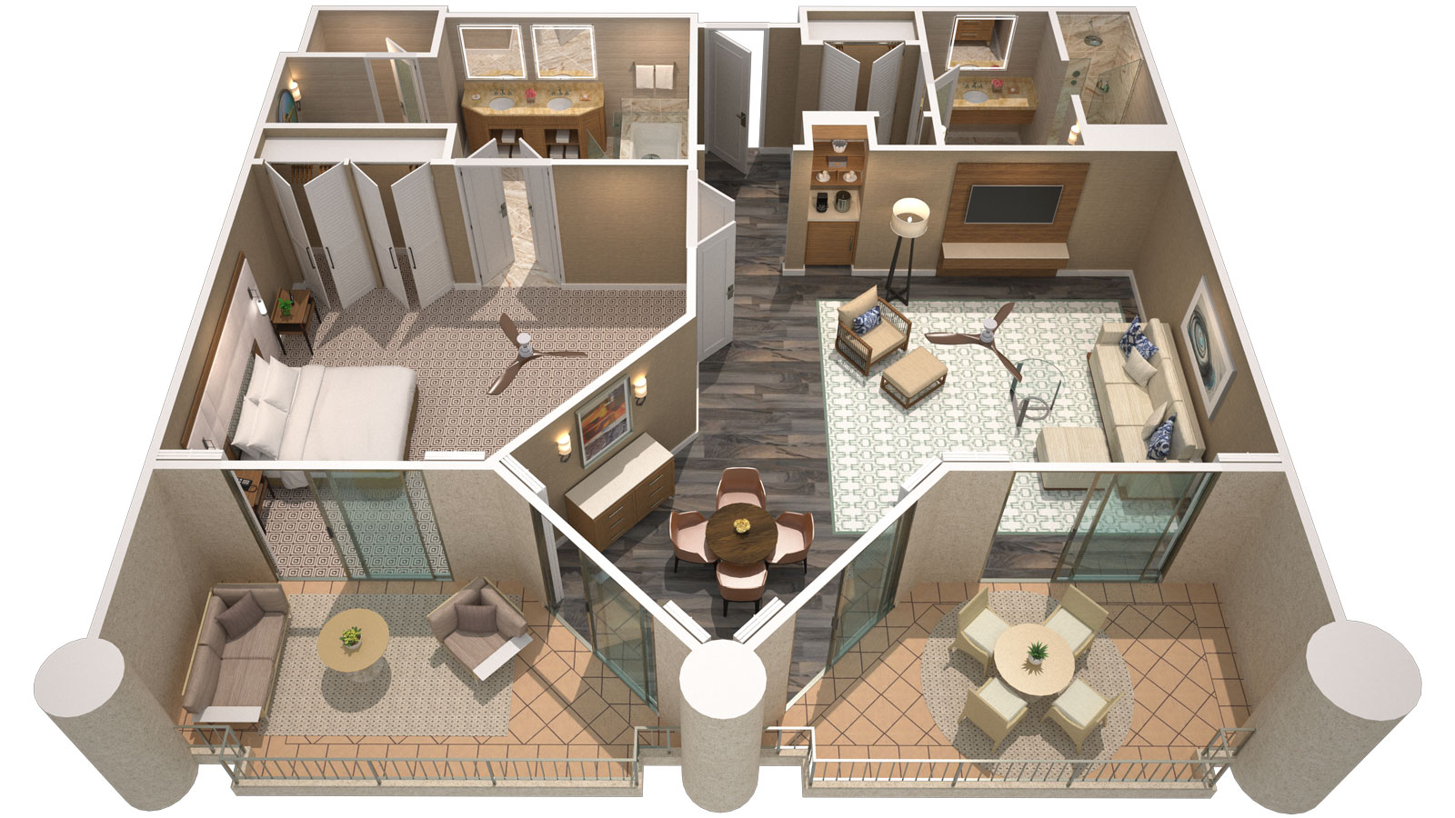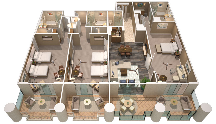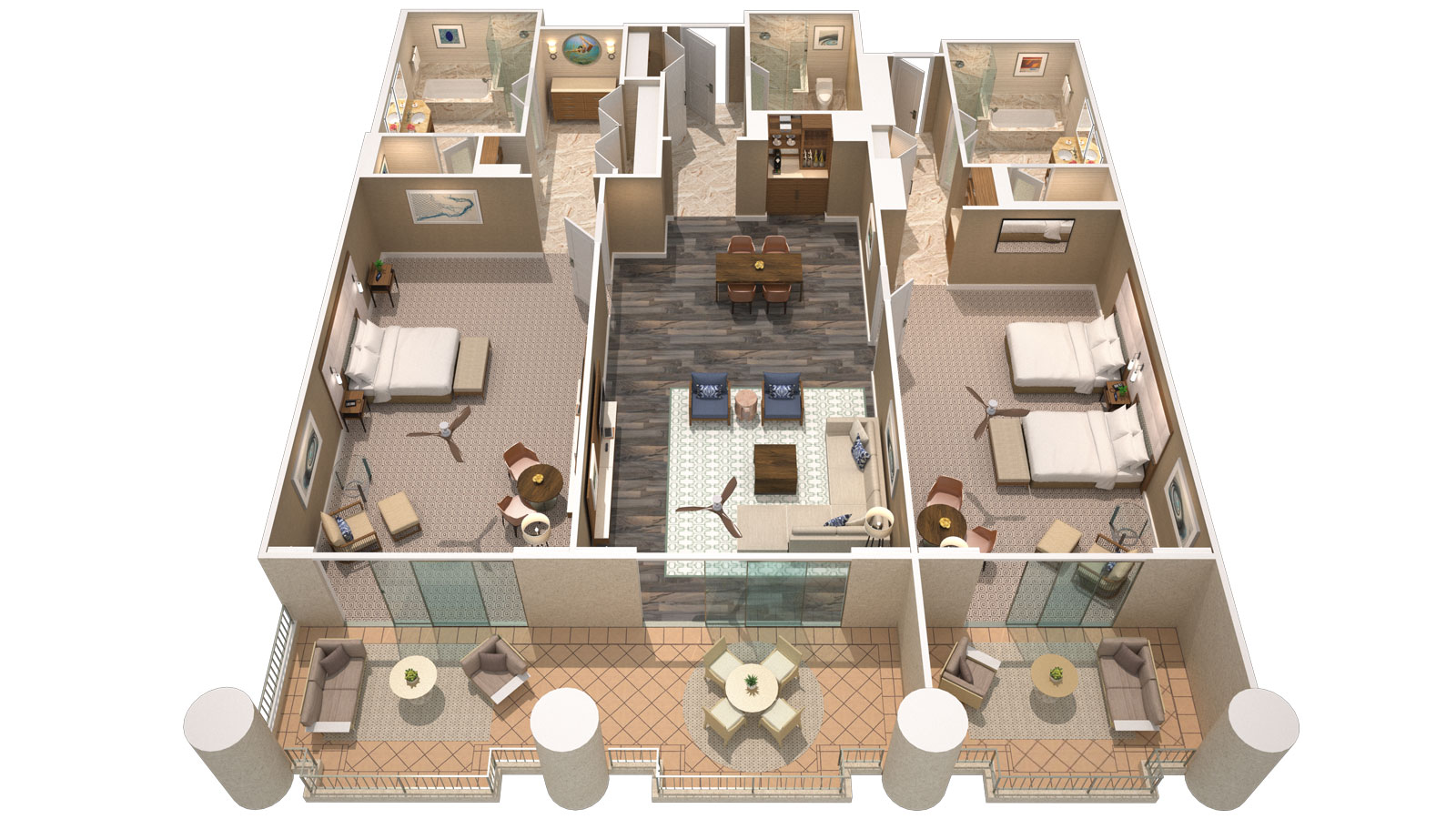 One Bedroom Suite / Two Bedroom Suite / Three Bedroom Suite / Four Bedroom Suite: к номеру может быть присоединено до трех дополнительных спален как с кроватями King-size, так с двумя Queen-size.