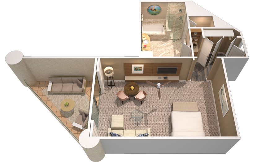 Номера на 8-м, клубном, этаже имеют категорию – Club Executive Ocean View Prime Suite. В их стоимость включен клубный пакет.