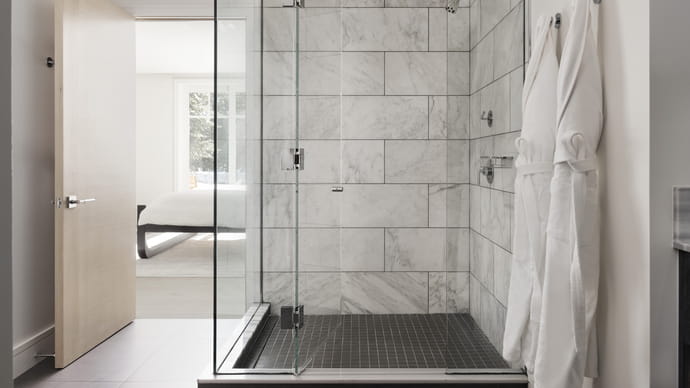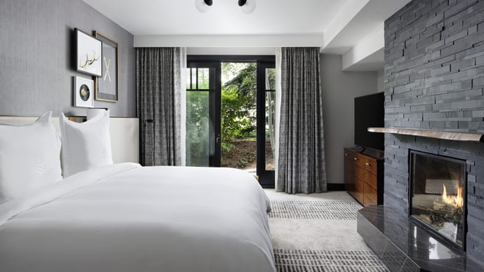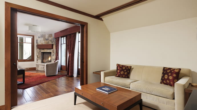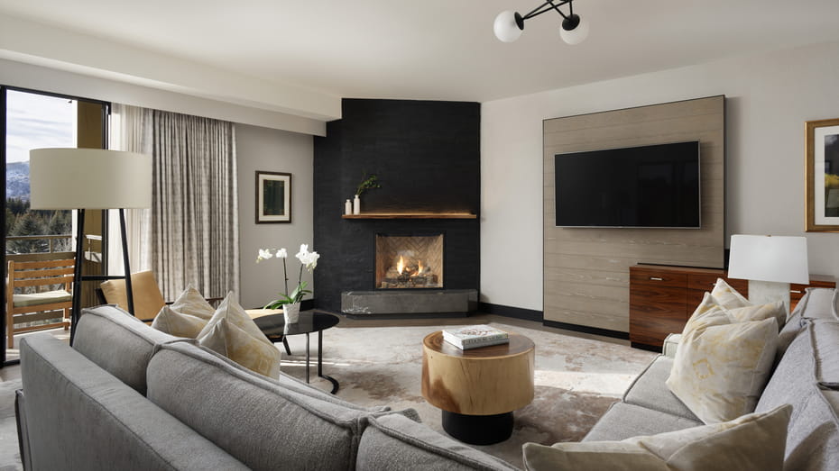 Комфортабельный просторный номер выполнен в серых тонах, отделка деревом и натуральным камнем. В номере спальня, гостиная с мягкой мебелью и газовым камином. Ванная комната с двойной раковиной, ванной и отдельной душевой кабиной, гостевой туалет. Идеальный номер для пар или небольших семей с детьми.