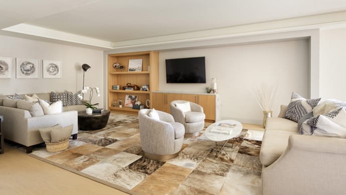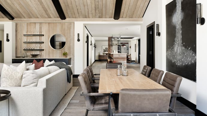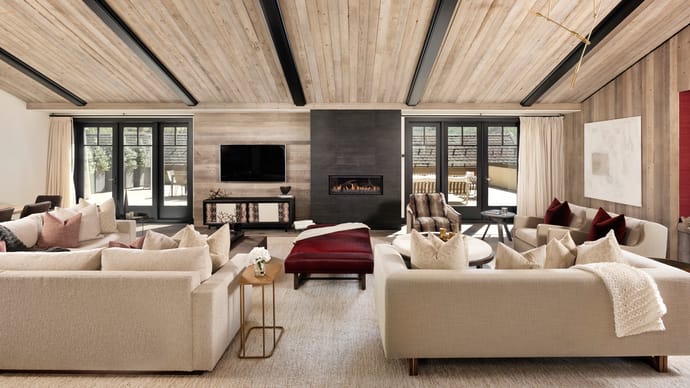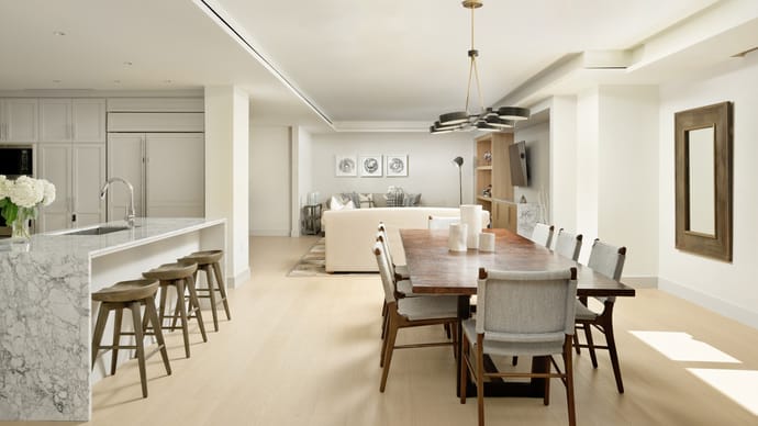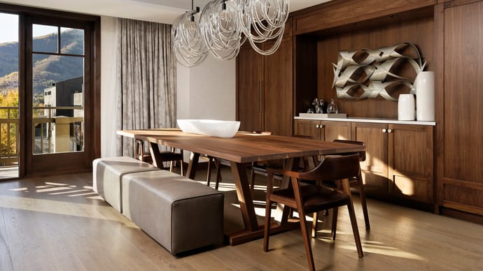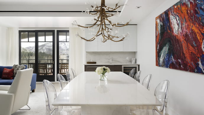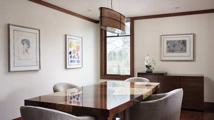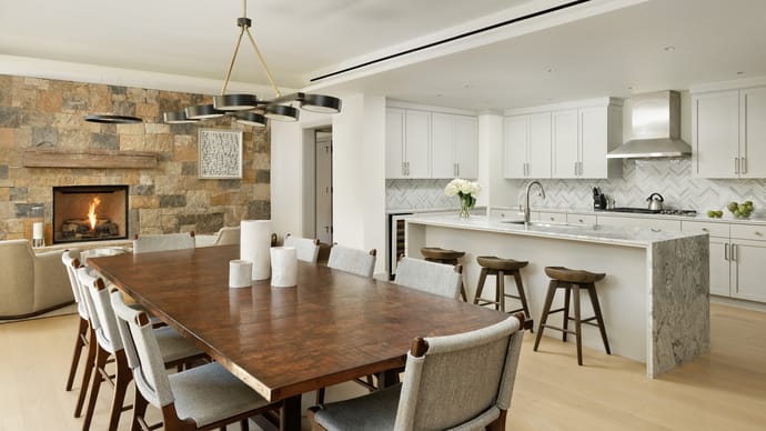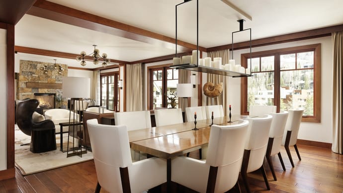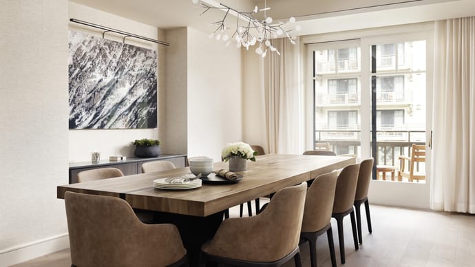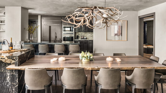 Стильные апартаменты в современном стиле выполнены в натуральных светлых тонах с отделкой деревом и натуральным камнем. В номере 6 спален, просторная гостиная с камином, разделенная на 2 зоны, каждая с обеденным столом, полностью оборудованная кухня, 6 ванных комнат, гостевой туалет.