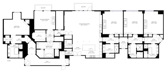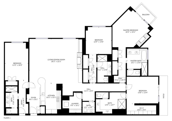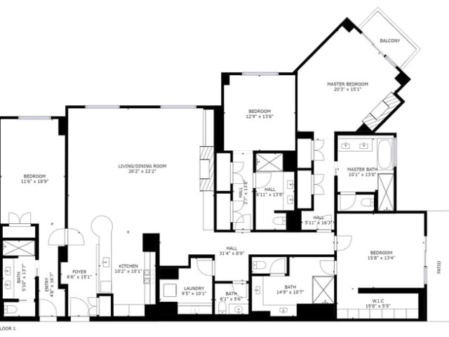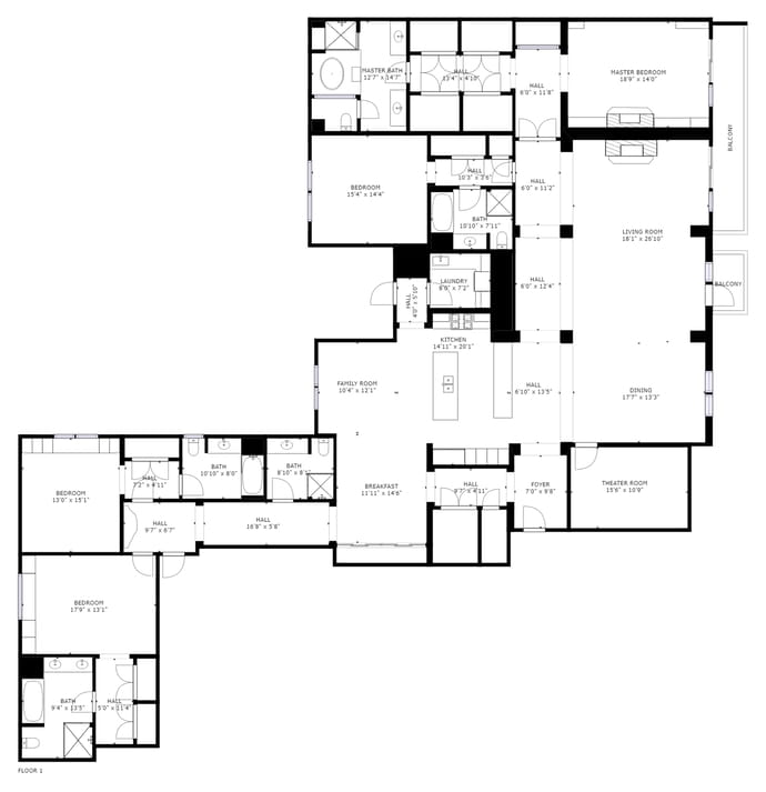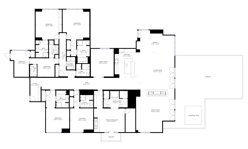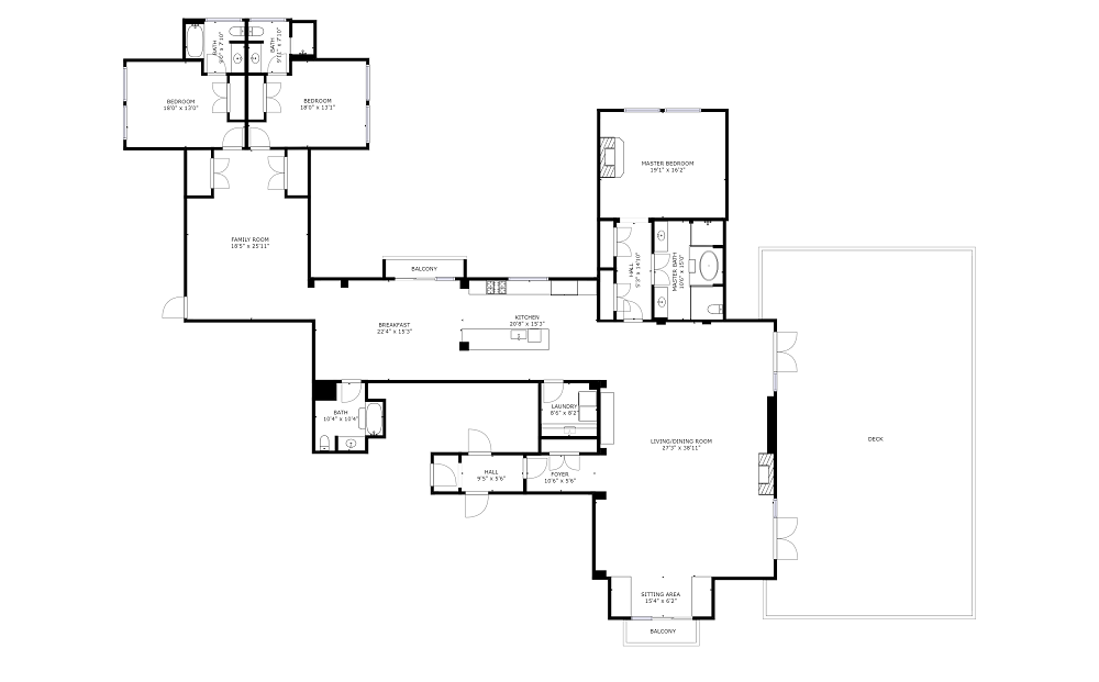5 (3 спальни, гостиная со столовой, комната отдыха den)