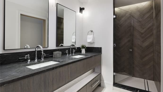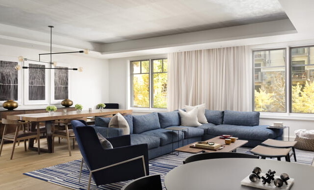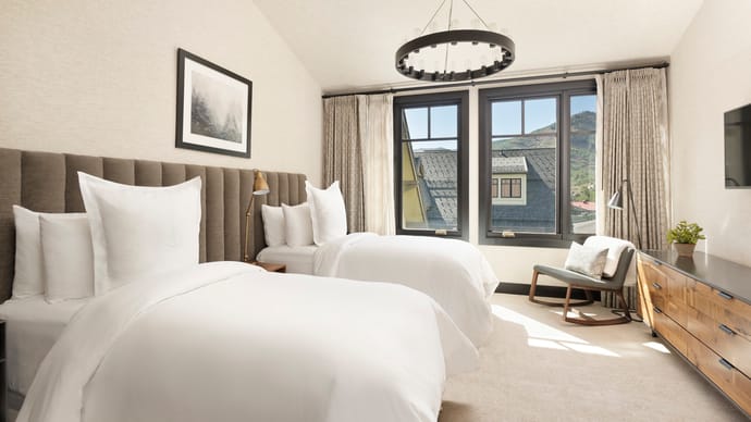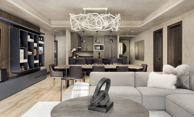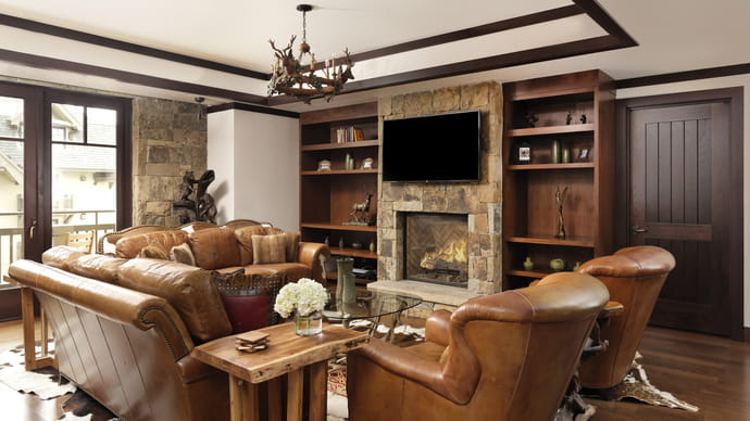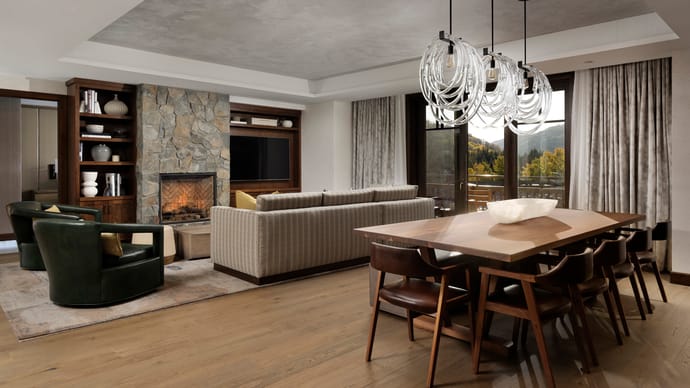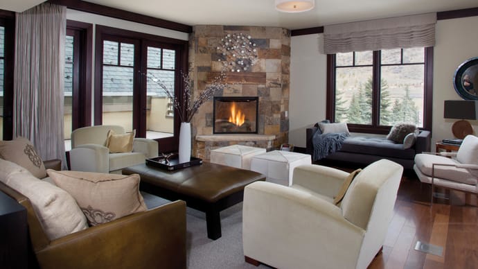 Стильные апартаменты в современном стиле выполнены в теплых натуральных тонах с отделкой деревом и натуральным камнем. В номере 2 спальни, одна из которых с газовым камином, просторная гостиная с мягкой мебелью и камином условно разделена на 2 зоны отдыха, столовая с обеденным столом на 8 персон, полностью оборудованная кухня. Главная ванная комната с двумя туалетными столиками, ванной и стеклянной душевой кабиной, вторая ванная комната с душевой кабиной, прачечная комната.
