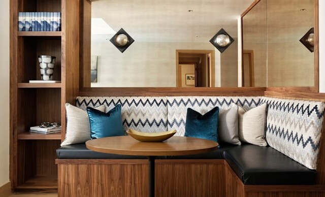 Просторные стильные апартаменты в современном стиле с балконом. Теплые натуральные тона с яркими акцентами, отделка деревом и натуральным камнем. В номере 2 спальни, одна из которых с газовым камином, гостиная с мягкой мебелью и камином, столовая с обеденным столом на 4 персоны, полностью оборудованная кухня. Просторная ванная комната с двумя туалетными столиками, ванной и стеклянной душевой кабиной, вторая ванная комната с душевой кабиной, гостевой туалет.