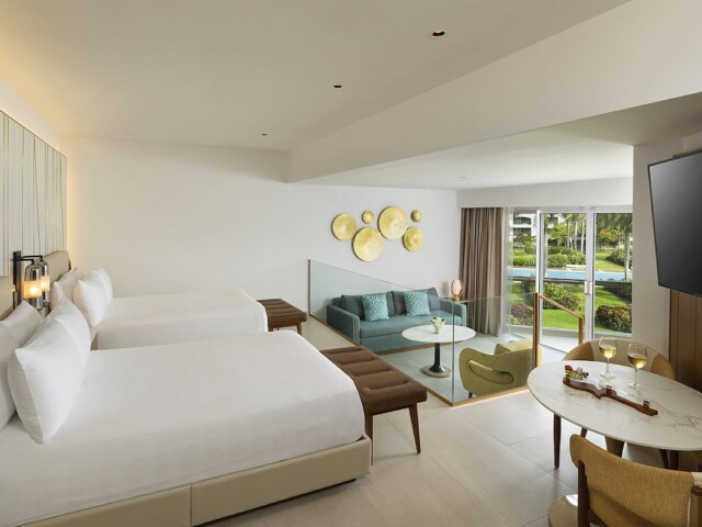 Большой спа-центр площадью более 5 000 м2, 48 процедурных кабинетов, в том числе комнаты для парных процедур. 6 массажных беседок на пляже.