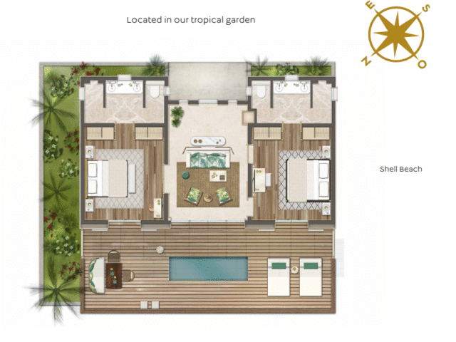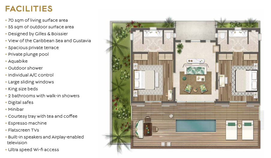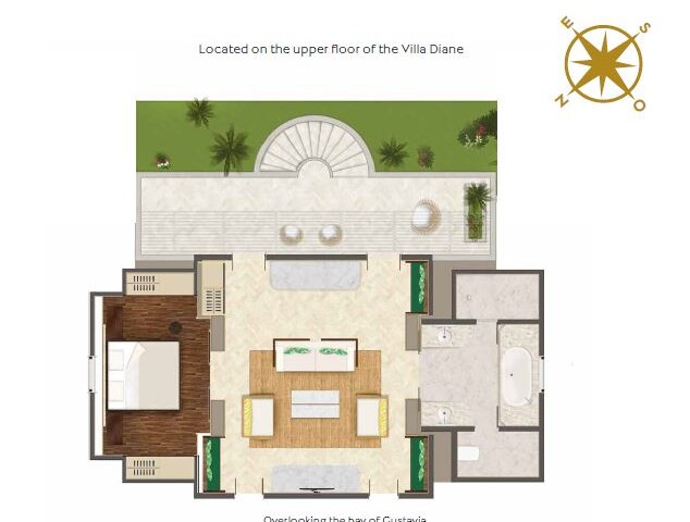 • 1 Villa Diane с 5 спальнями и бассейнами, которая может быть как арендована целиком, так и каждый сюит по отдельности.