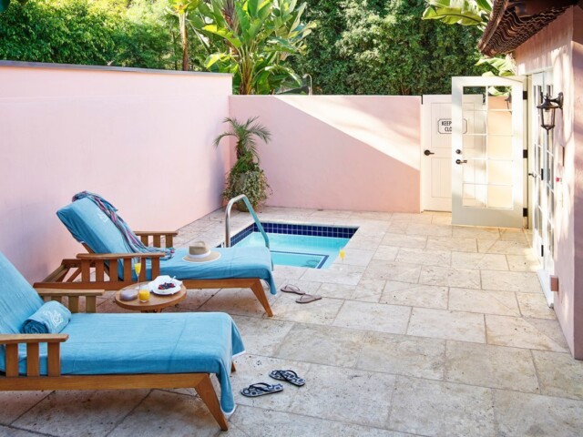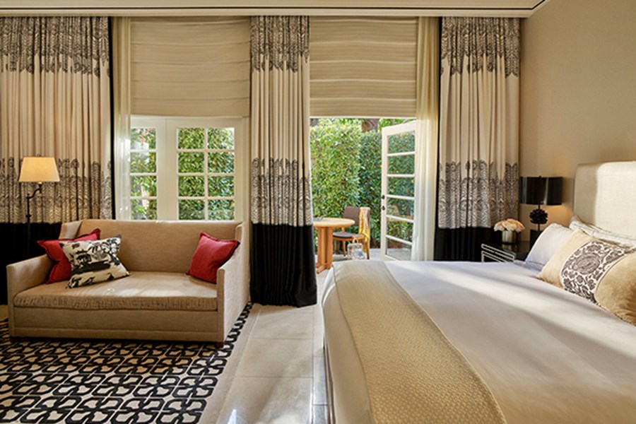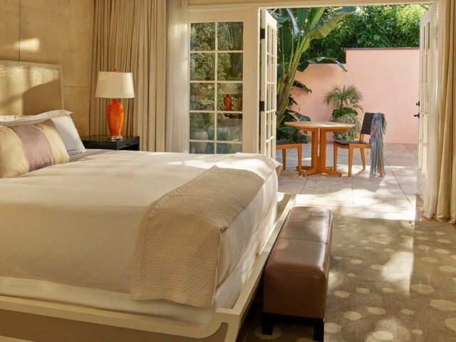 Элегантный номер с большими панорамными окнами выполнен в голливудском стиле 40-х годов. Знаменитая Грейс Келли останавливалась здесь после своей победы на Оскаре в 1954 году. В номере спальня, гостиная с мягкой мебелью и выходом на меблированное патио с джакузи в тени деревьев. Ванная комната с ванной и душевой кабиной, подогреваемый пол. Гостевой туалет.