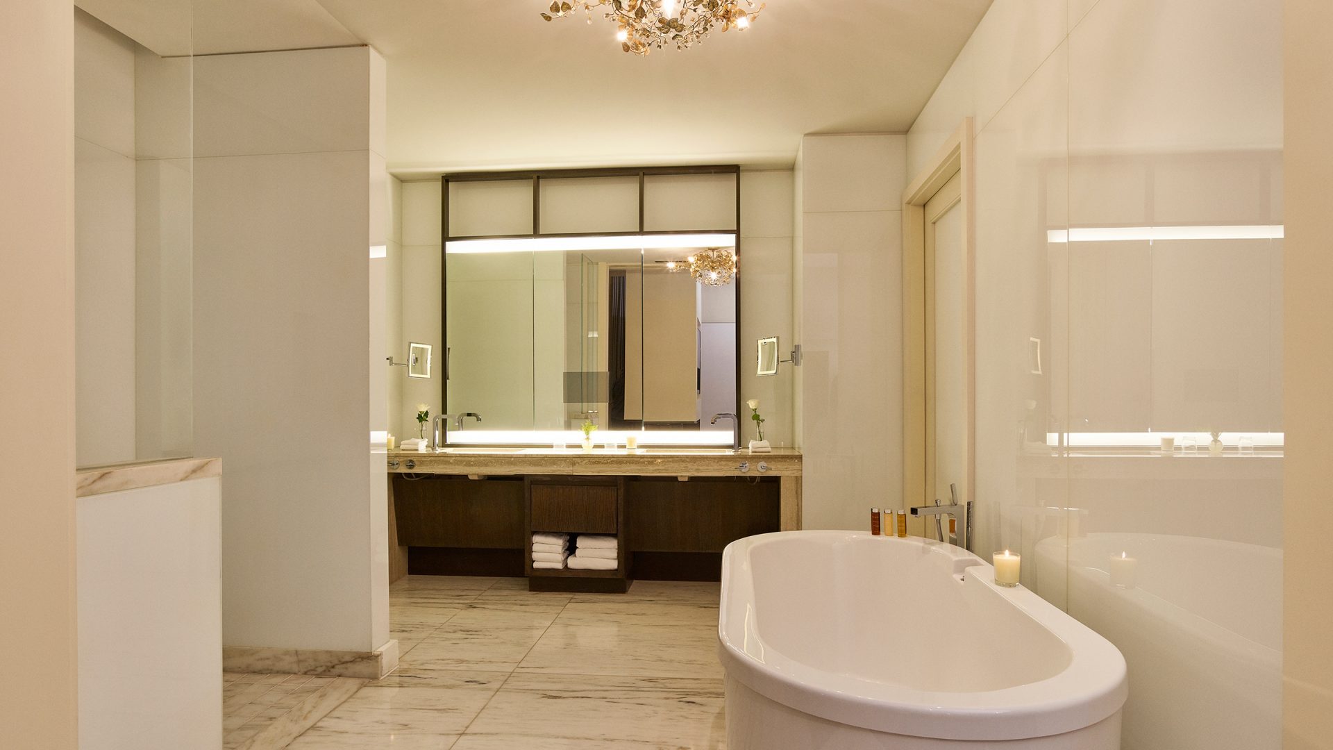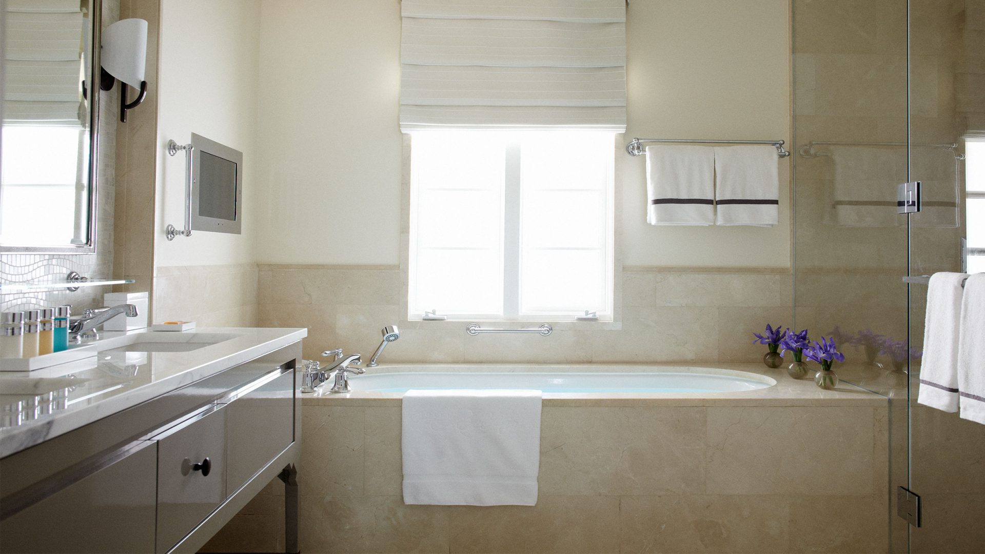 косметическое зеркало в ванной комнате со встроенным телевизором