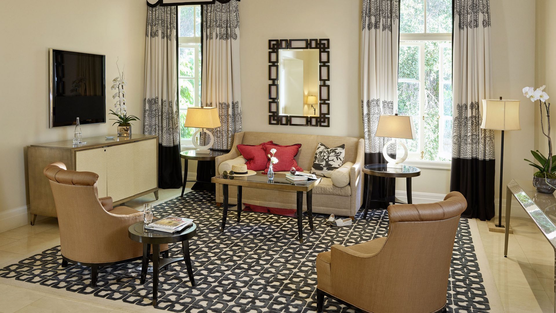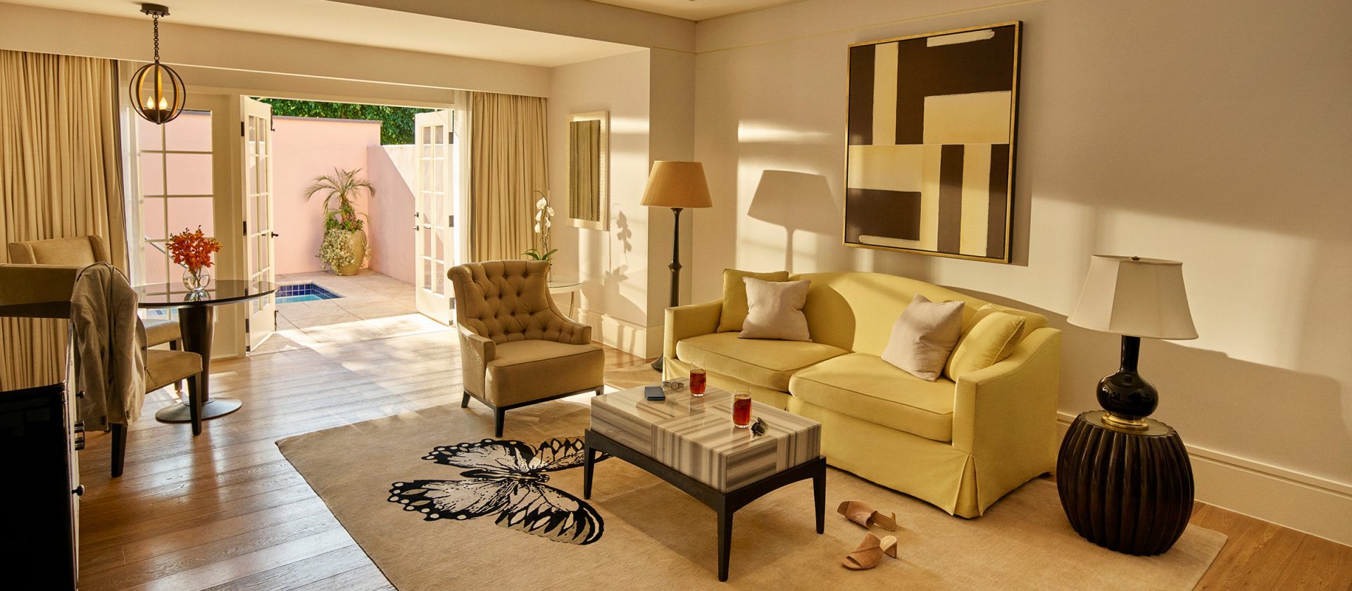 В архитектуре и дизайне преобладают атмосфера и приемы испанской колониальной архитектуры, строгие линии ар-деко и голливудский шик “золотого века”.