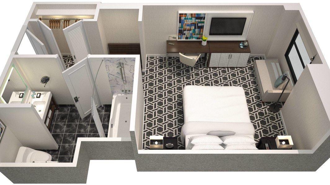 44-этажное здание вмещает 527 гостиничных номеров (из них 101 категории Suite) и 147 частных апартаментов.