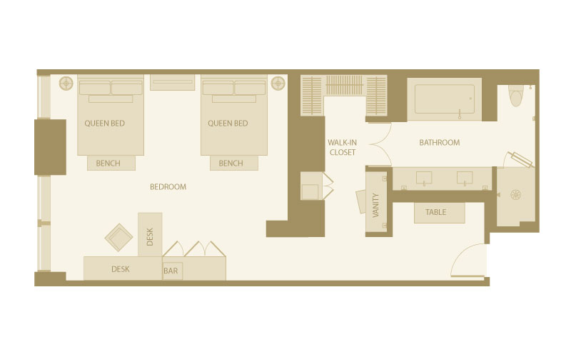 - Просторные номера (от 39 м²), с большими ванными комнатами; часть с гардеробными, кухнями, стиральными машинами и сушилками.