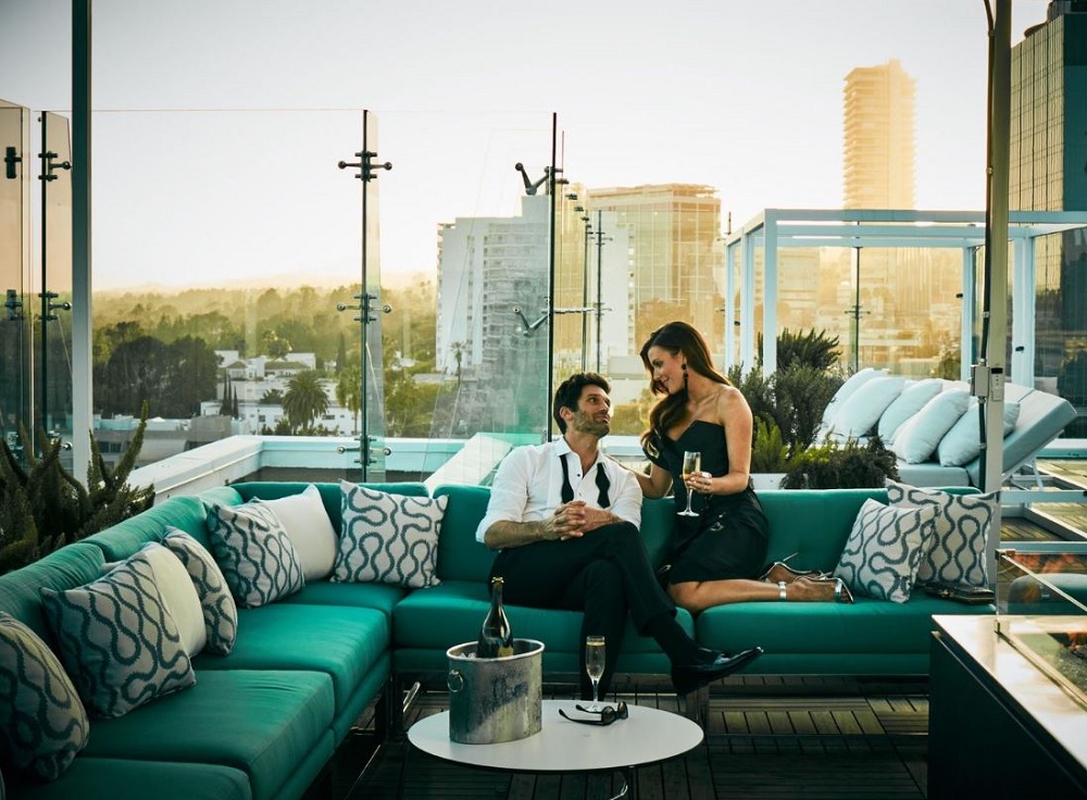Как и положено отелю в Голливуде, на крыше есть бассейн с большой зоной отдыха, индивидуальными павильонами и обслуживанием в светлое время суток.