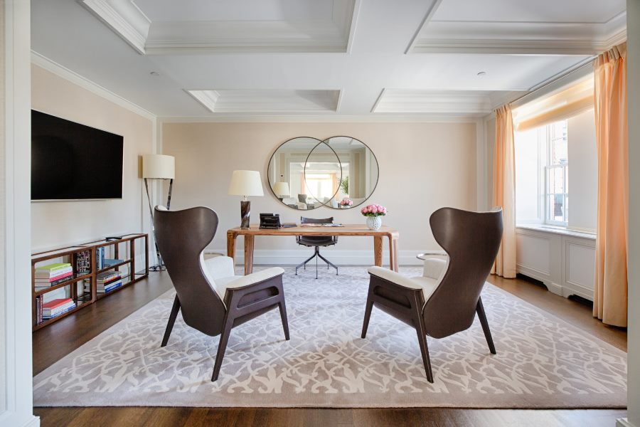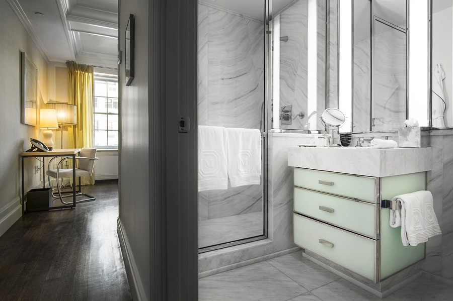 Необычное переплетение истории и современности очевидно с первых минут пребывания здесь. Архитектурный облик фасада здания не менялся c 1927 года и строгие линии нью-йоркского ар-деко выглядят так же, как десятилетия назад. А интерьер отеля, разработанный французским гением эклектики, дизайнером Жаком Гранжем, напротив – максимально современен, роскошен в деталях и контрастах, но скуп в цветах и формах. Общественные зоны и номера украшают предметы и произведения искусства, созданные специально для The Mark кутюрье Карлом Лагерфельдом, дизайнерами Роном Арадом, Эриком Шмиттом и Владимиром Каганом, фотографами и художниками Тоддом Эберлом и Рейчелом Ховардом.